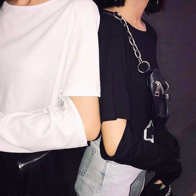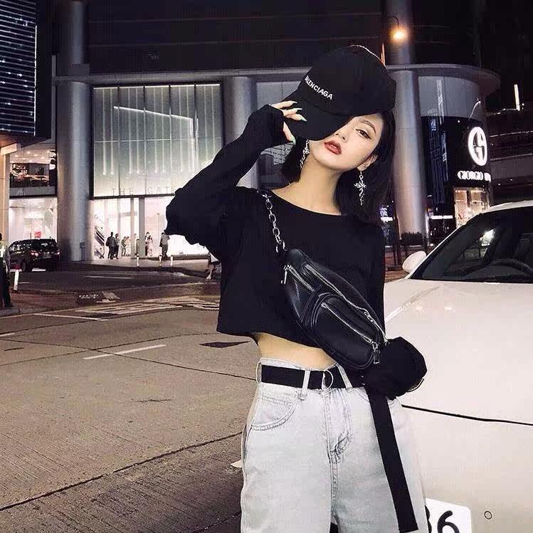 New Korean style fashion all-match short section navel button detachable sleeves short-sleeved T-shirt top women's long-sleeved autumn ins