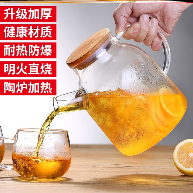 Bubble water teapot high temperature resistant cold kettle glass heat resistant high temperature household juice teapot explosion-proof set large capacity