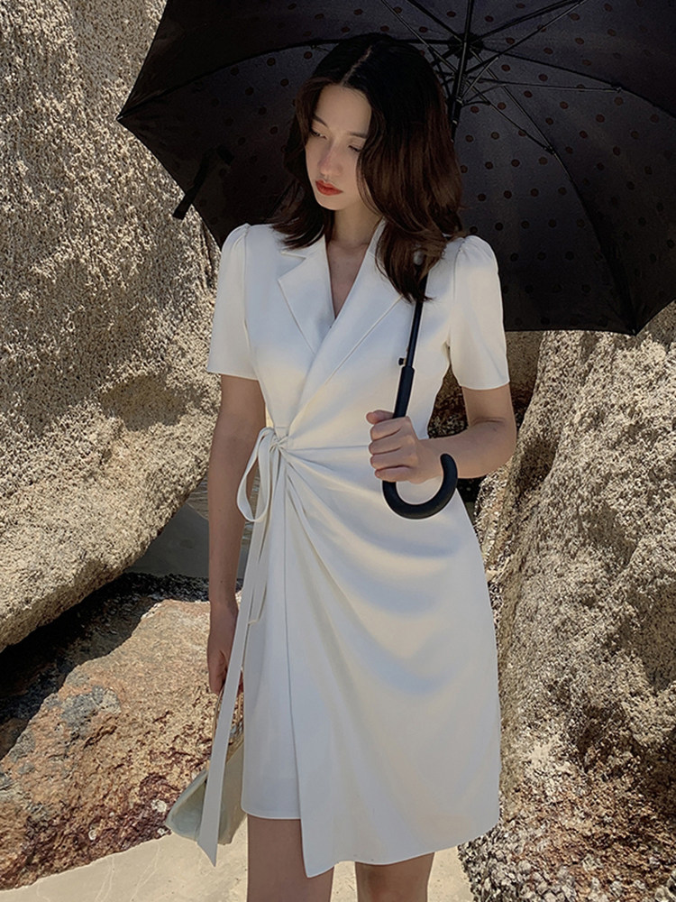 White Suit Dress Lady Summer 2022 New Little Sub Superior Sense Style Ol Commute Black Professional Dress Spring