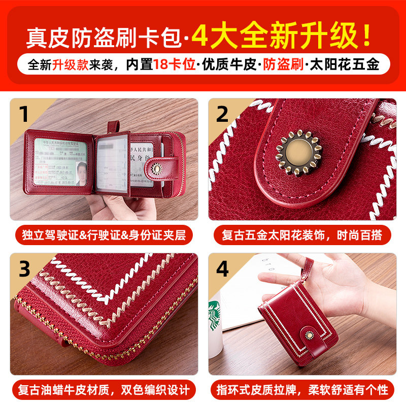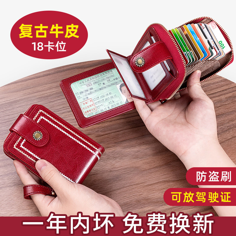 Lady card bag genuine leather cover burst new driver's license piece clip integrated multi-position function anti-magnetic and small and delicate