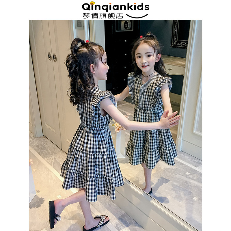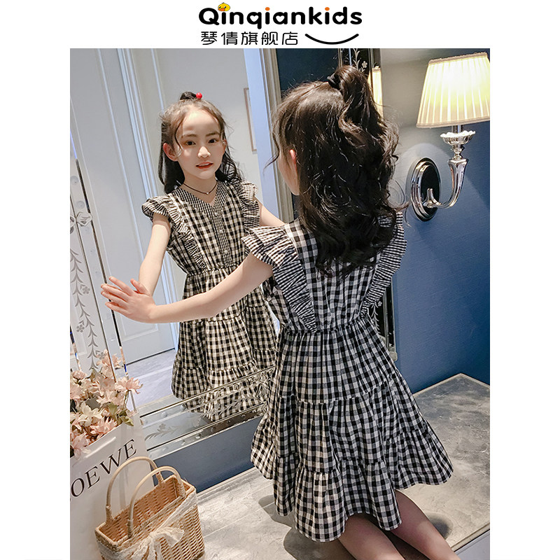 Girl Ocean Dress Summer 2022 New Girl Foreign Pie Trendy CUHK Boy Korean Version Plaid Harness Princess Dress