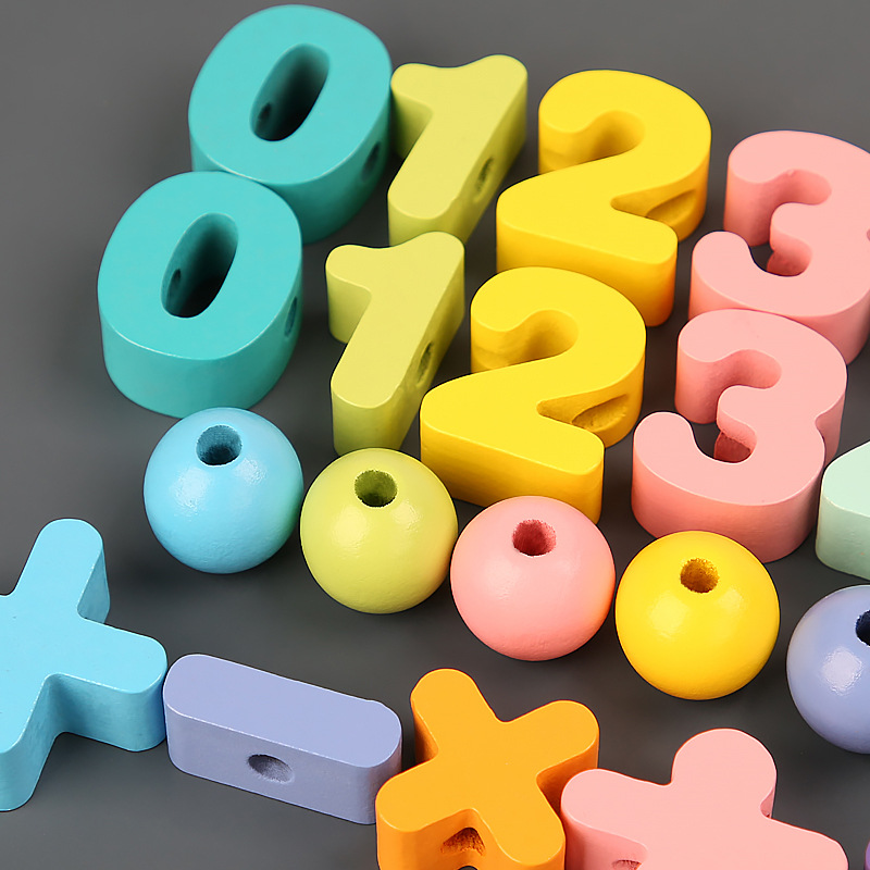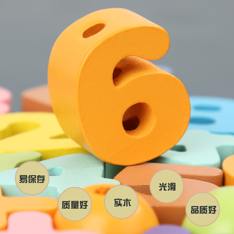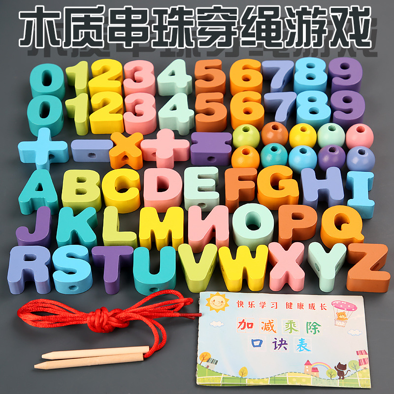 Children's wooden strings Pearl letters Digital wearing rope game hand Brain coordinated development Puzzle Early Parent-child Biathlon Toys