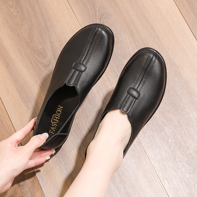 Mom Shoes Spring Autumn Non-slip Soft Bottom Single Shoes Middle Aged Comfort Women Shoes Grandma Genuine Leather Light Middle-aged Leather Shoes Old