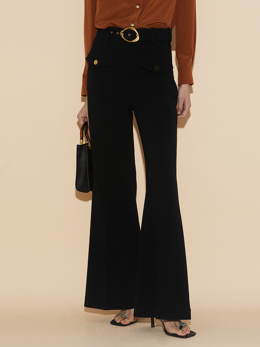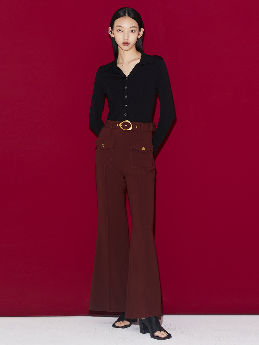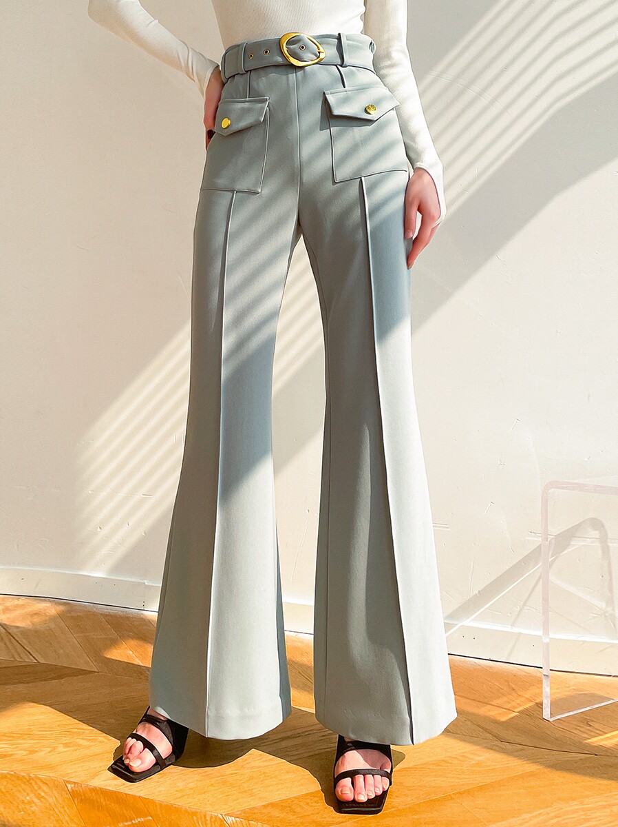 Boss Z's slightly flared high waist flared trousers women's retro style show legs long sassy and capable A-shaped line casual trousers women