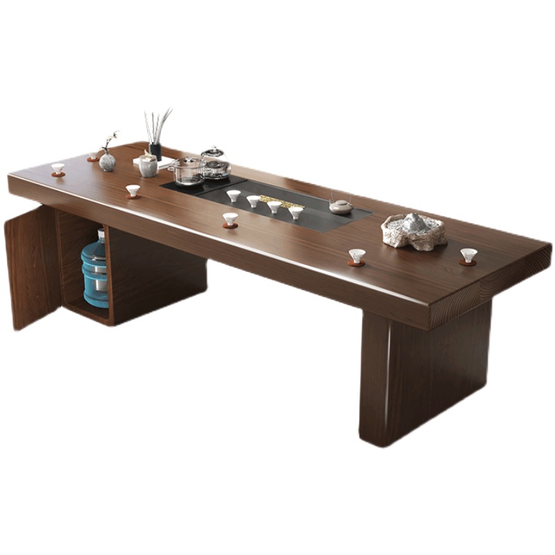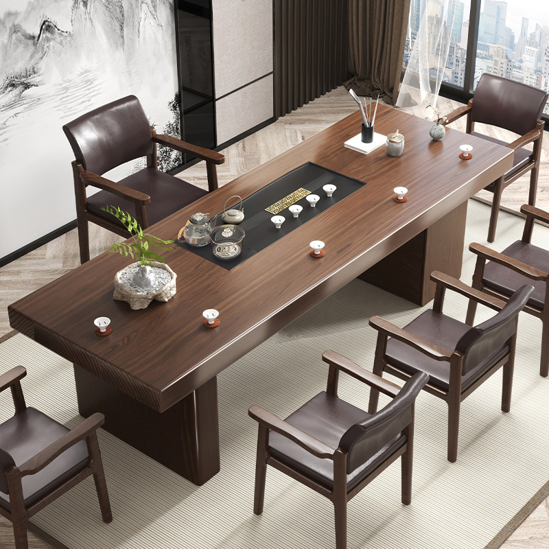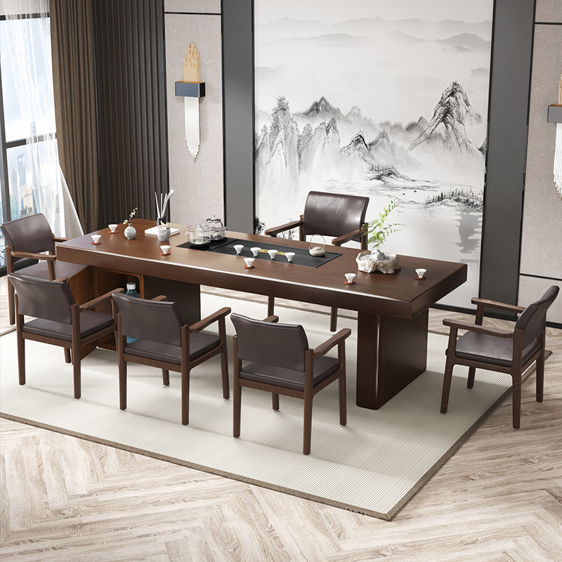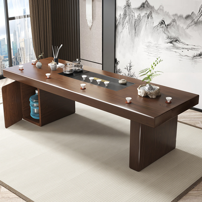 Solid wood tea table simple household tea table and chair combination living room all solid wood large board modern integrated office tea table
