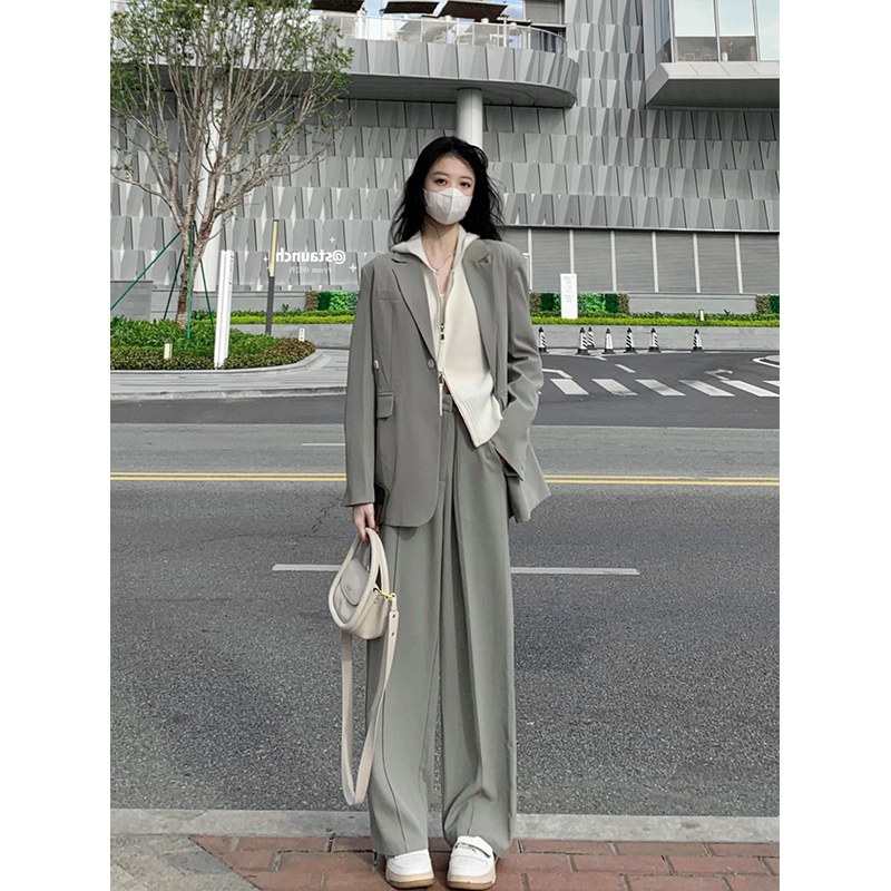 Autumn Clothing 2023 New Superior Sense Lukewarm Fashion Women Clothing Casual Fashion Slimy Green Suit Two Suits-Taobao