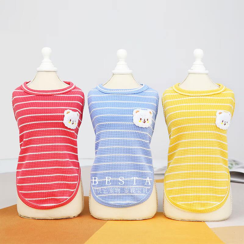 New Little Bear Striped Vest Pet Dog Dog Clothes Spring Autumn Summer Thin teddy Bears Beauty Pussy-Mitten Little Dog
