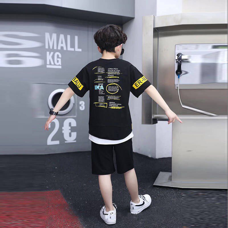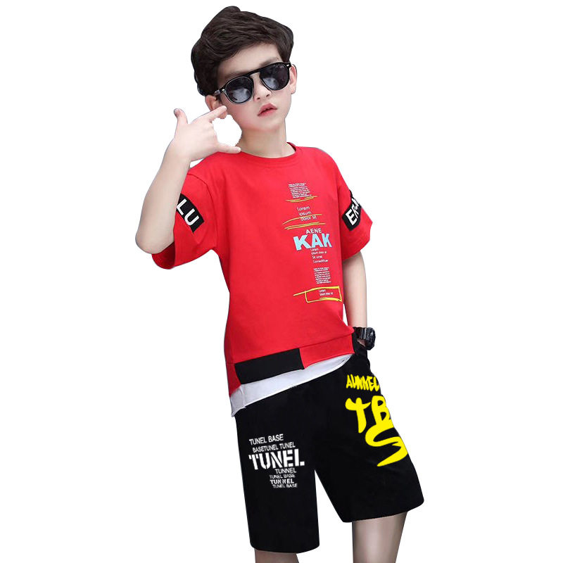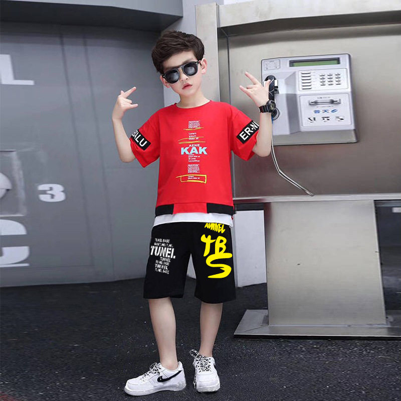 Kids Boys Summer Suit Handsome Kids Short Sleeves T-Shirt Cotton Summer Sports Shorts Two-Piece Set of Five-Point Pants