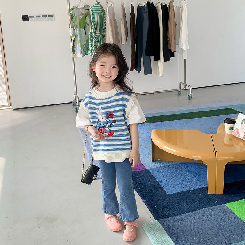 Girl's clothing waistcoat 2022 new Summer Korean Department Embroidery Little Rabbit Striped Child Baby Cartoon Knit Vest