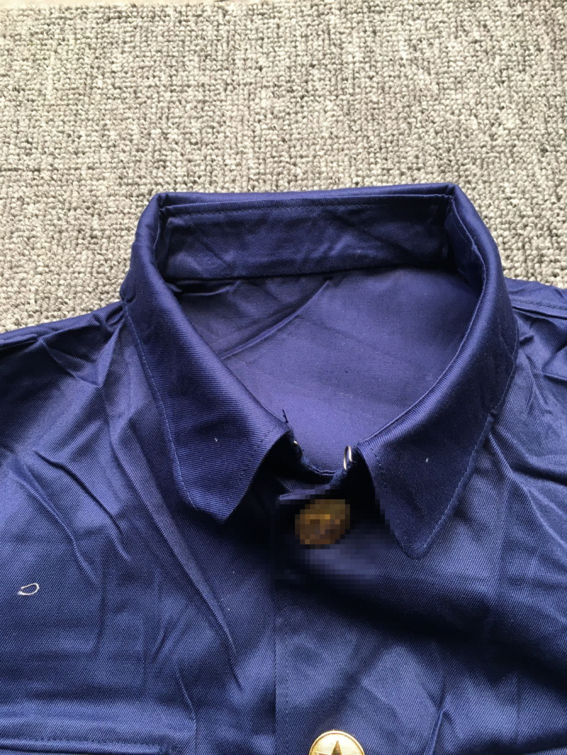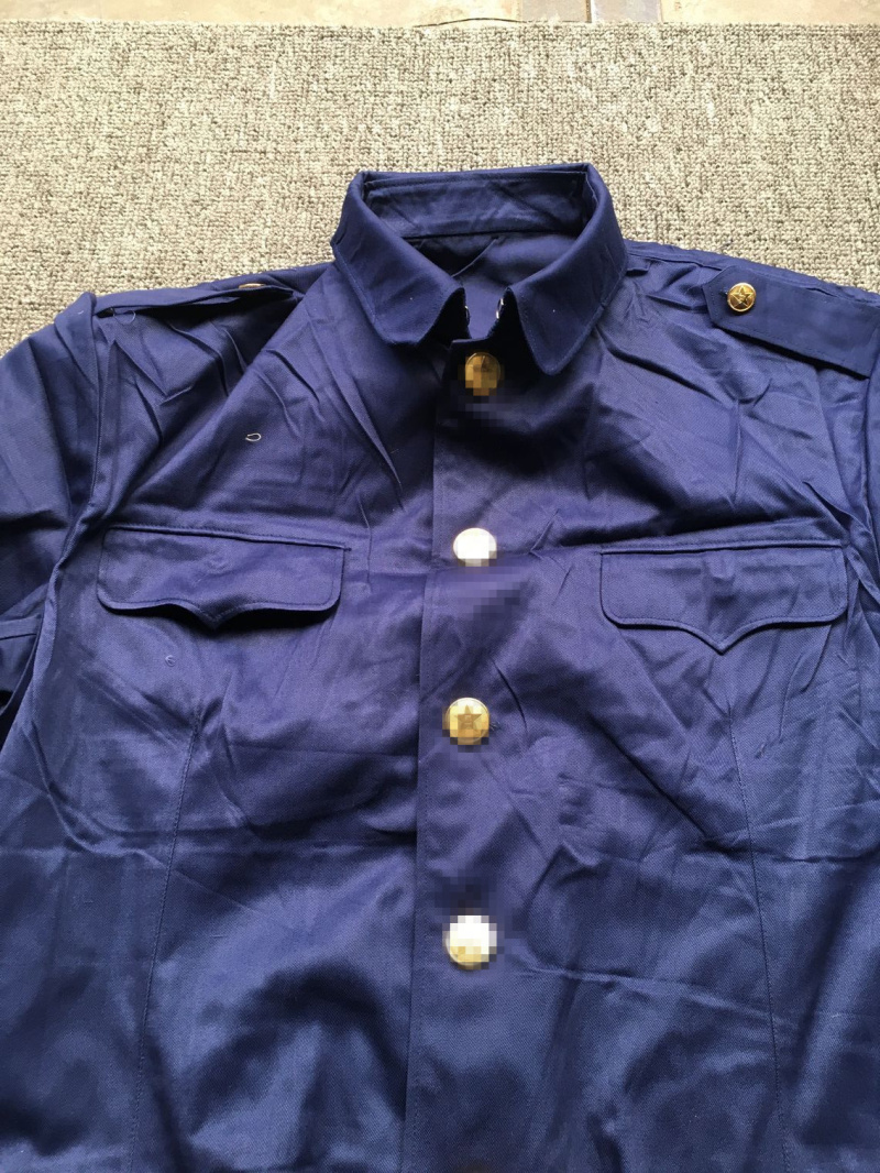 The old - fashioned 87 - type polyester card mountain suit is a blue pocket