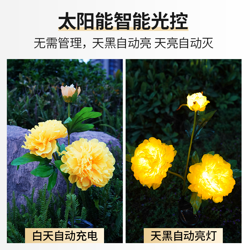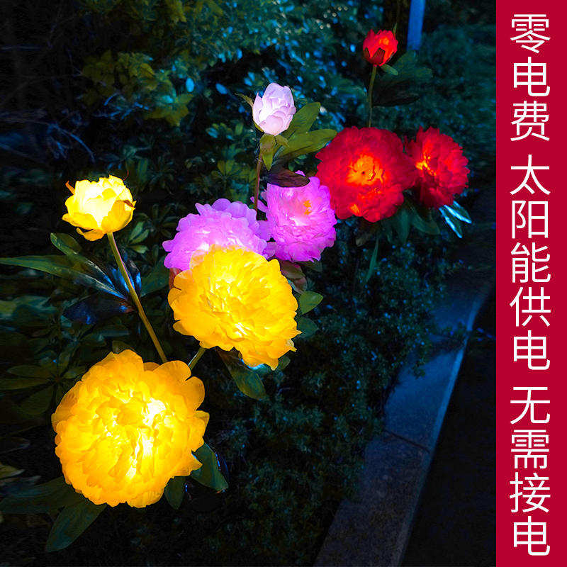Solar Lanterns Peony Garden Light Outdoor Patio Arranged led Balcony Decorative ground Lawn Flower Bouquet Lights