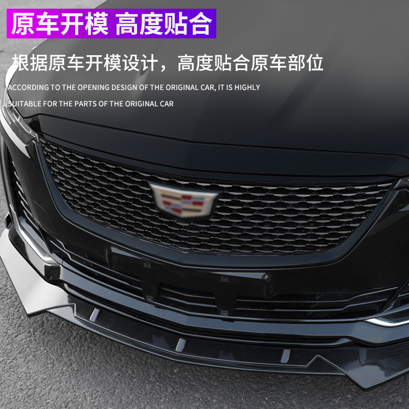 Suitable for Cadillac CT5 mid-frame modified carbon fiber pattern black warrior front bumper lip surrounded modified decorative strip