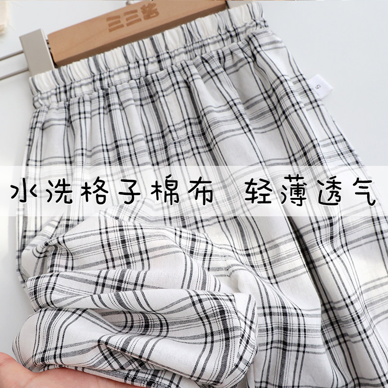 Baby Plaid Long Pants Summer Thin men and women Children's foreign pie Roof pants All cotton Children loose casual anti-mosquito pants