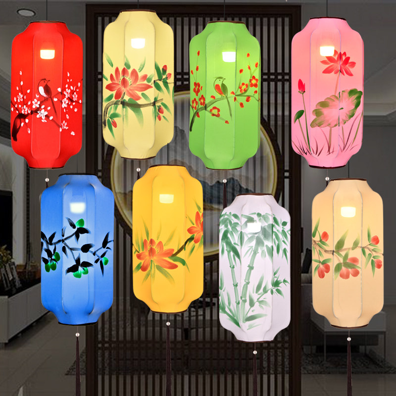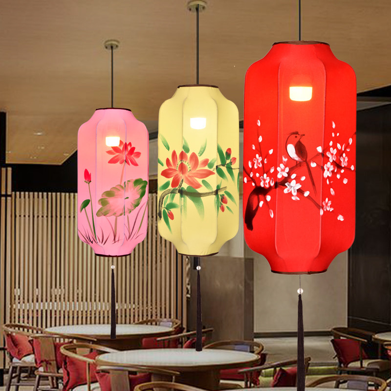 Chinese Cloth Art Hand-painted Vase Lantern Dining Room Tea Building Aisle Creative Winter Melon Long Hanging Lamp Red Lantern Custom