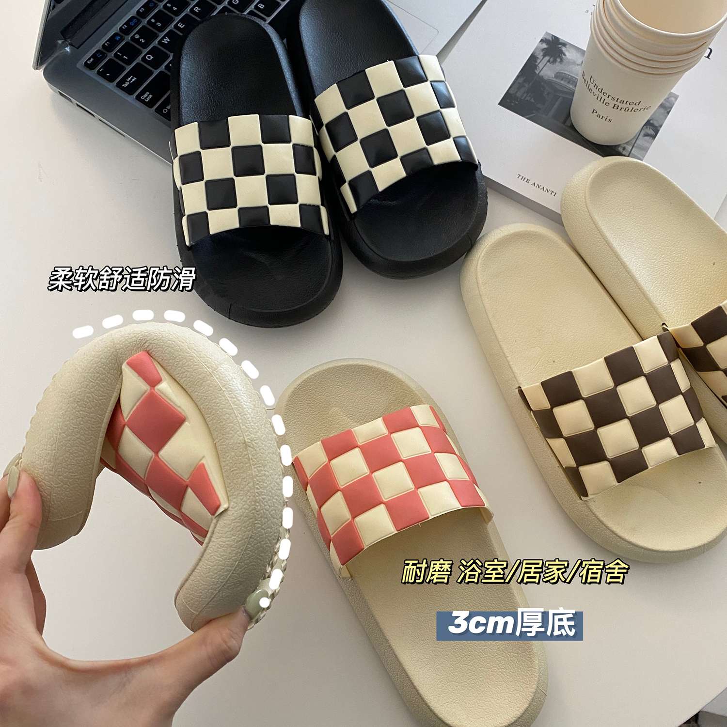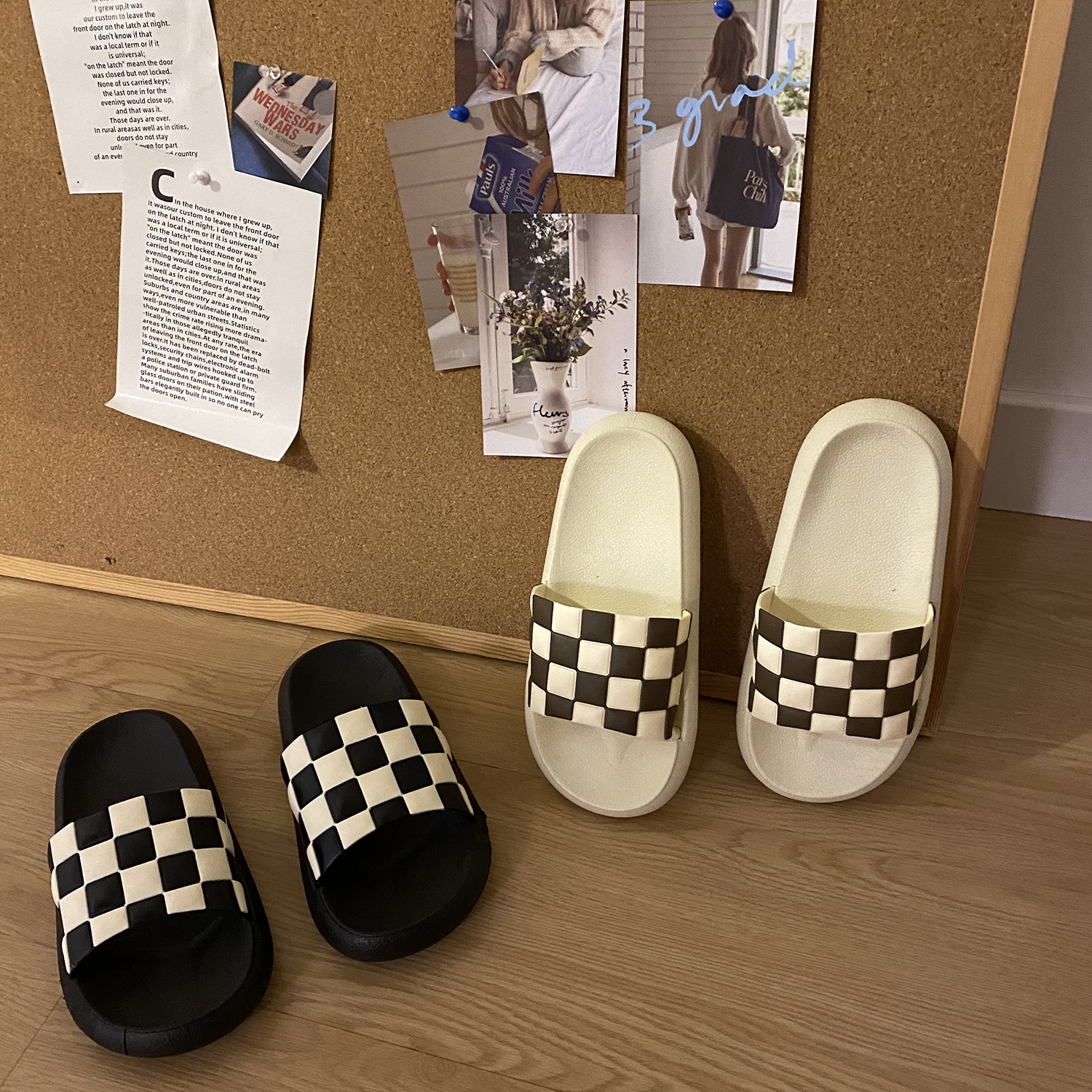 Xinbangbang Grocery Store Outerwear Checkerboard Rubber Slippers Thick Bottom Indoor Household Non-slip Slippers for Women