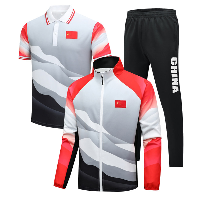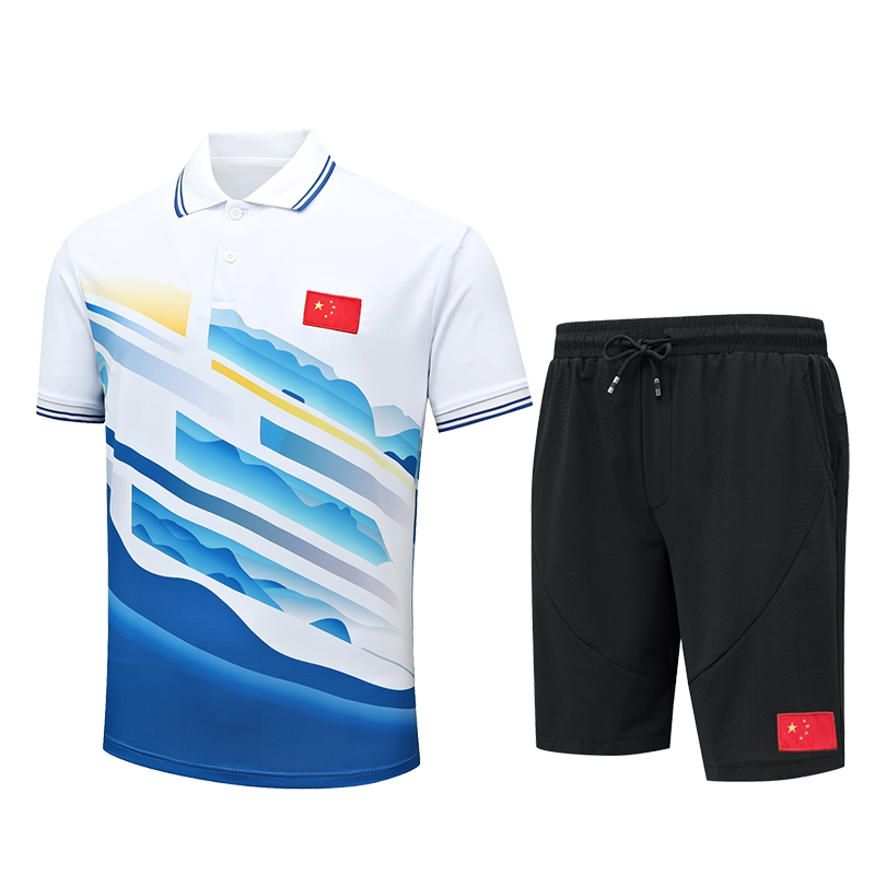 Blue (long sleeve suit) red (long sleeve suit) blue (short sleeve suit) red (short sleeve suit) blue (short sleeve blouses) red (short sleeve blouses) black (single shorts)