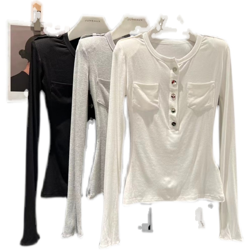 JUMEAUX Metal Buckle Shoulder Pad Slim Hot Girl Bottom Shirt Trendy Fashion Versatile Thin Slim T-Shirt Top