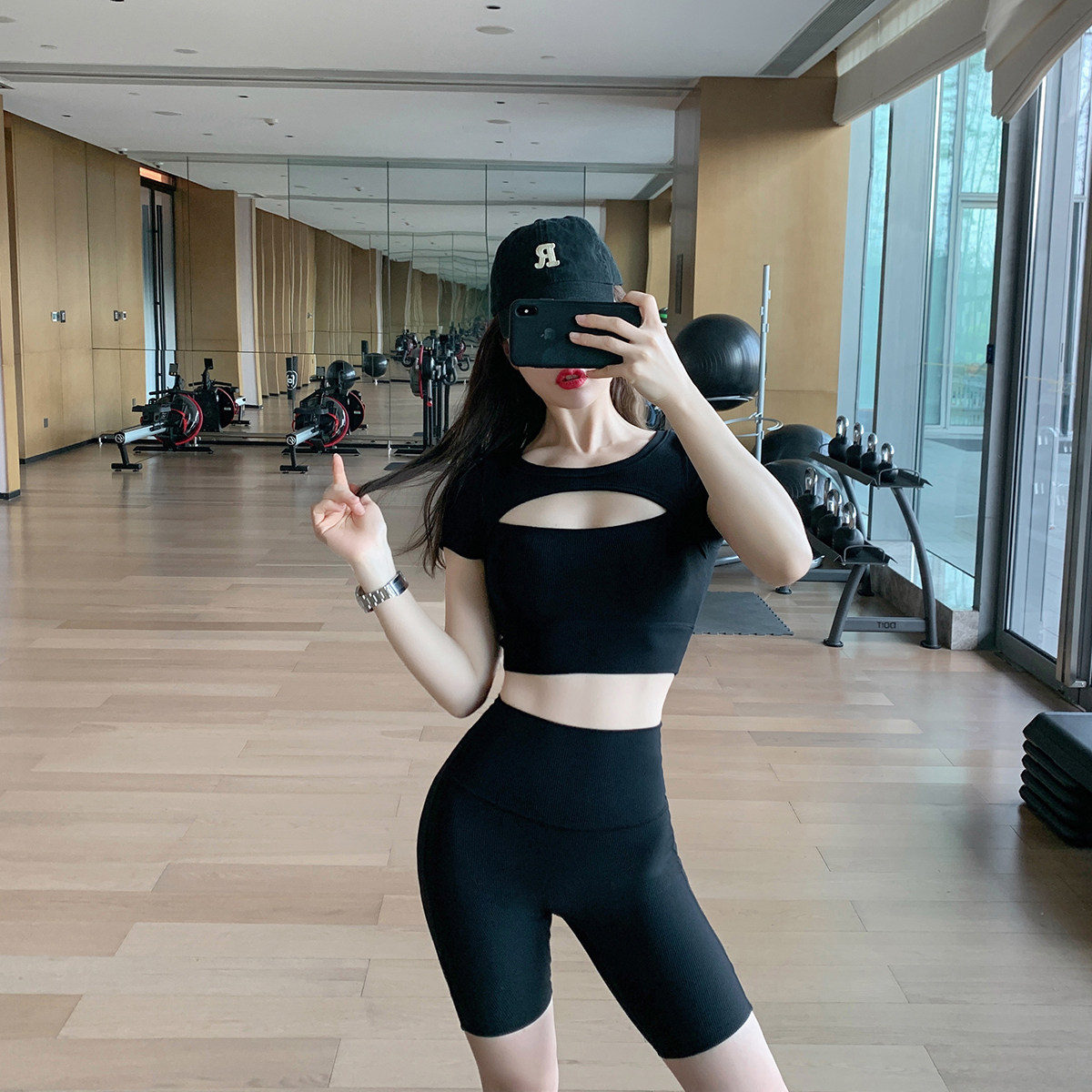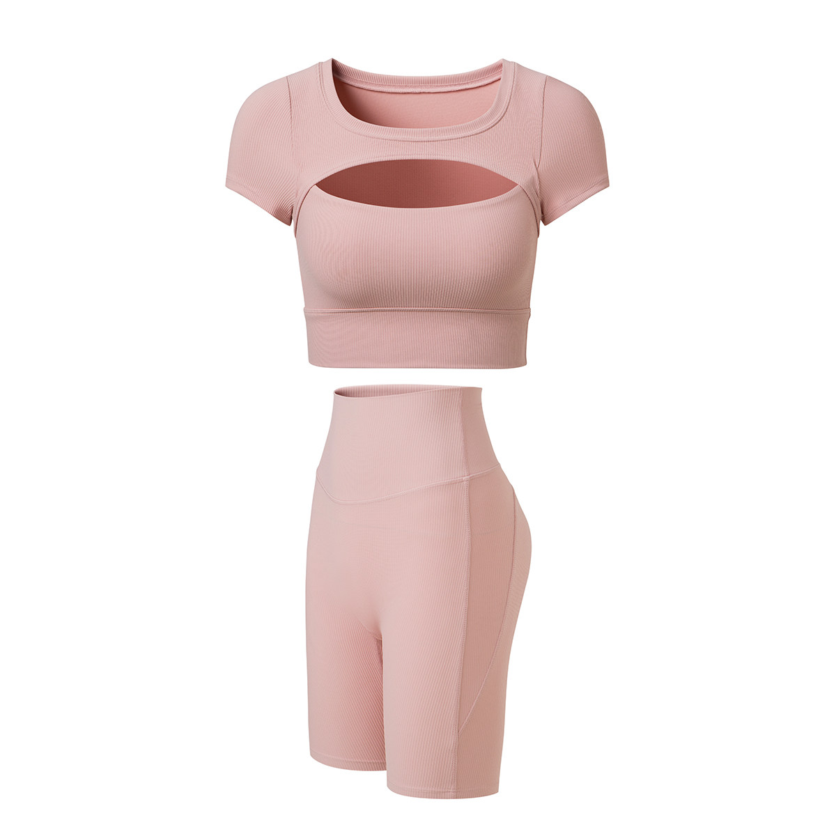 Byurun Yoga suit girl Pilates training suit fitness running outer wearing five-pants short sleeve sports tops