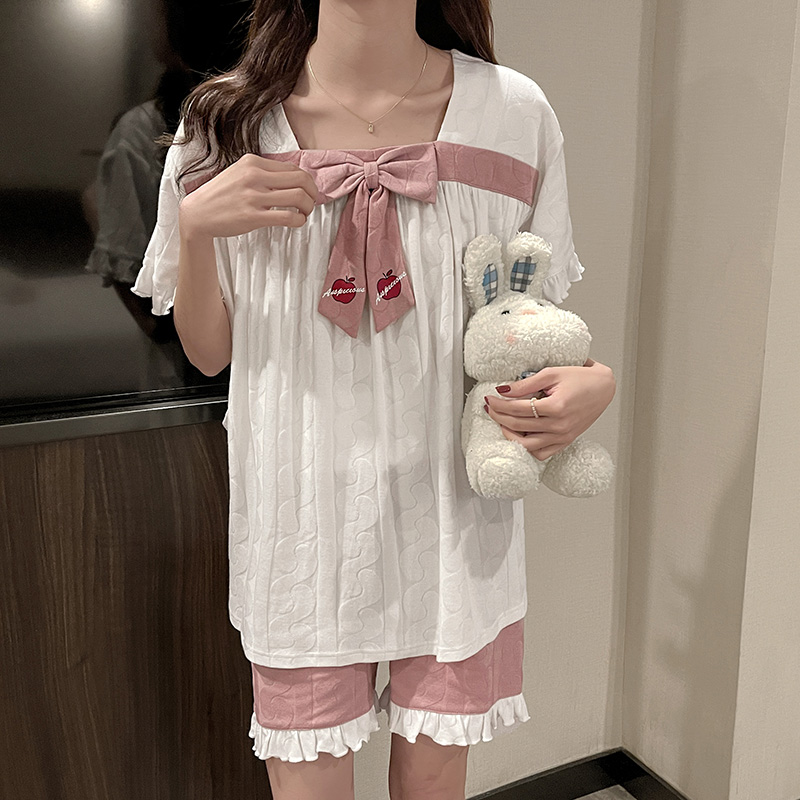 Spring and summer thin cotton short-sleeved postpartum nursing breastfeeding jacquard confinement clothing pregnant women pajamas female maternity May 6