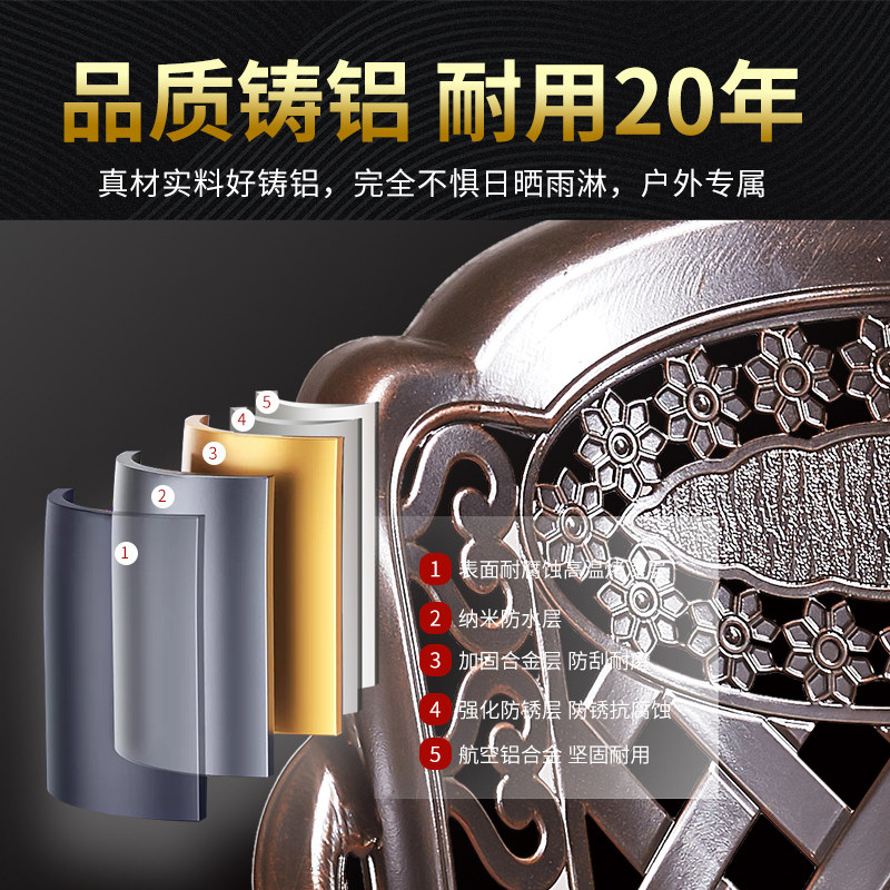 Outdoor cast aluminum table and chair outdoor garden villa light luxury leisure open-air balcony waterproof sunscreen wrought iron table and chair combination