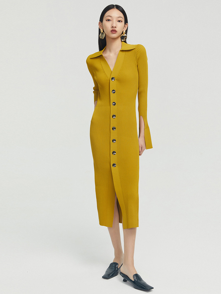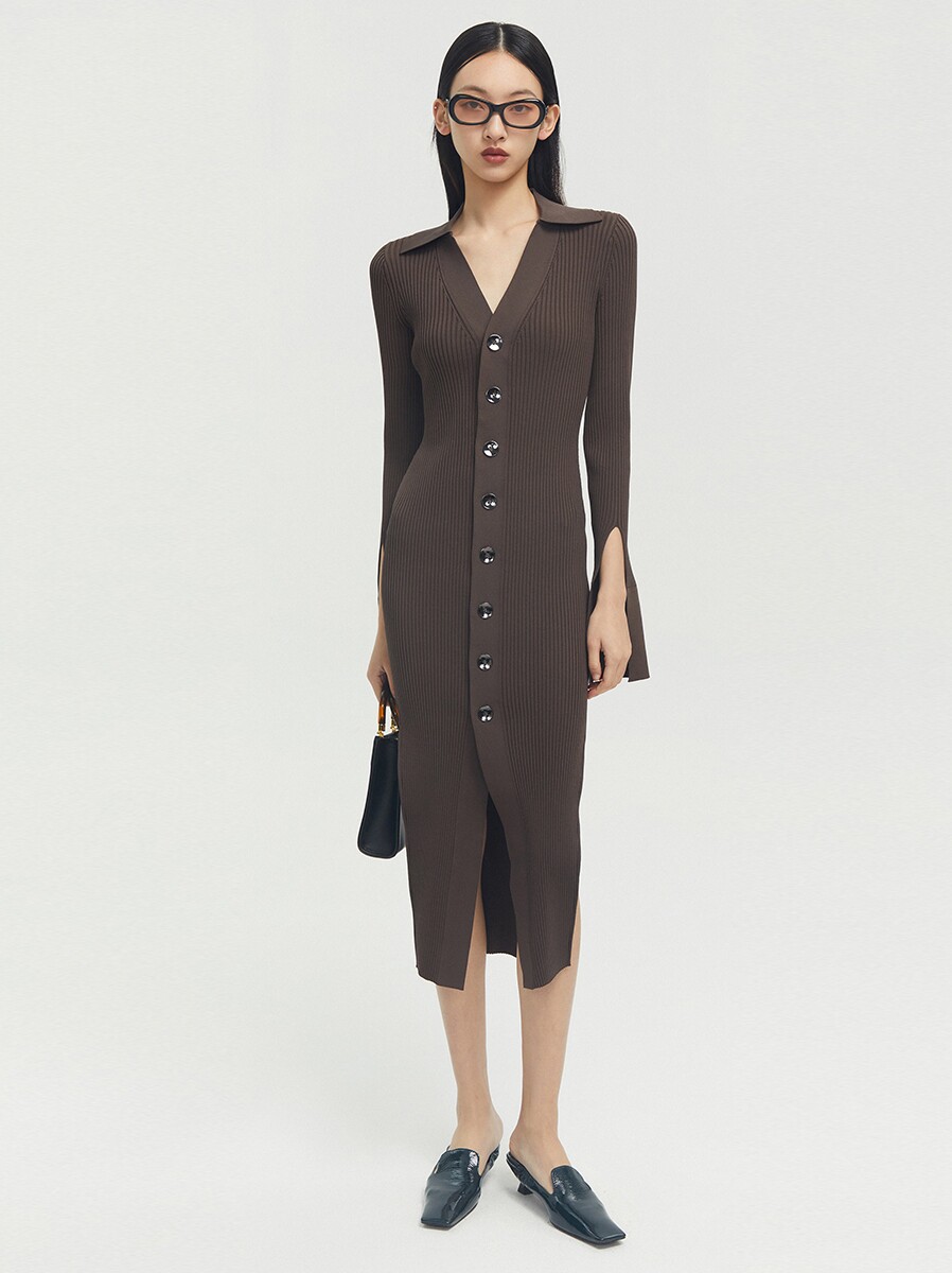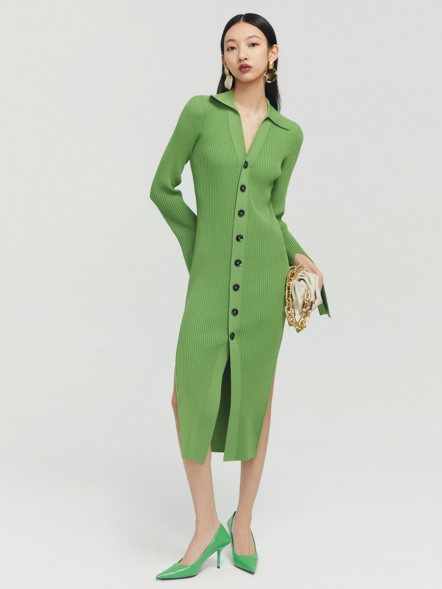 Boss Z single-breasted mid-length dress women's waist and vertical feminine flavor one-piece multi-wear cardigan dress women
