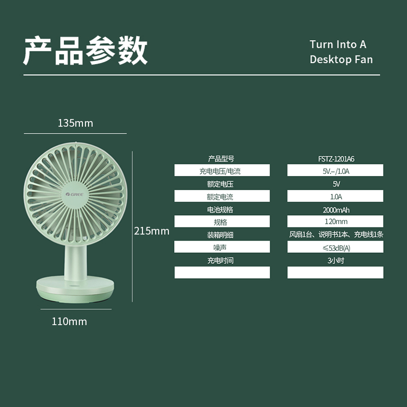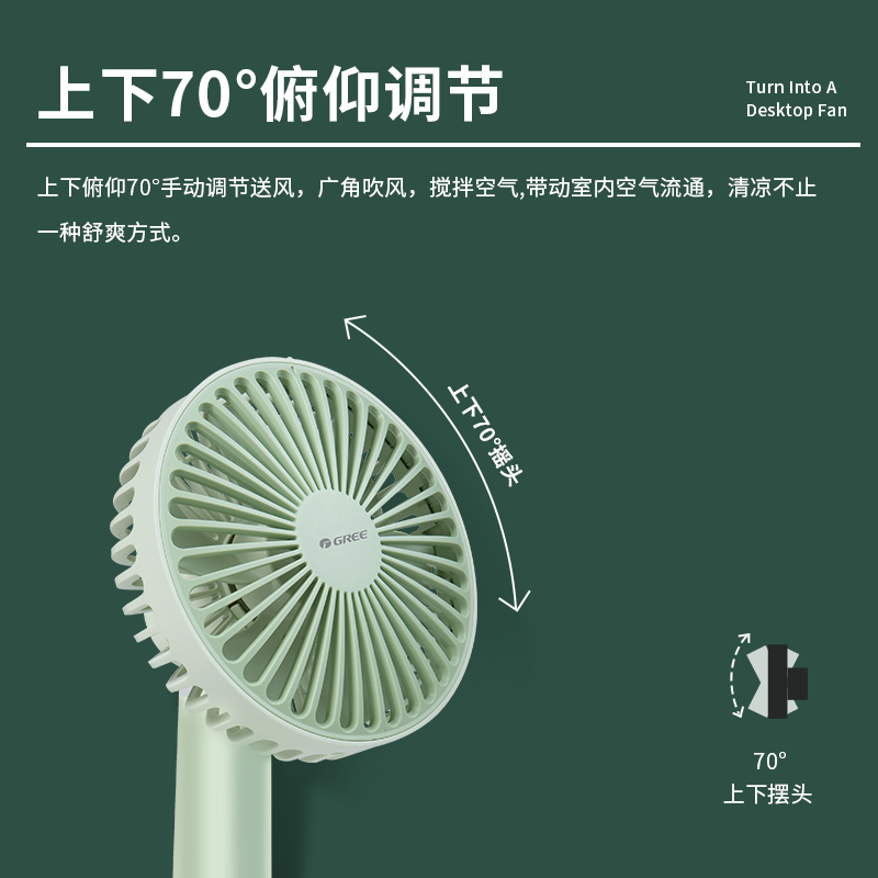 Gli handheld electric fan USB charging type portable car with double purpose Dormitory Desktop Large Wind Table Fan