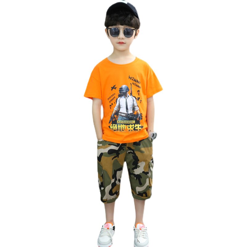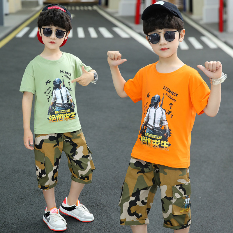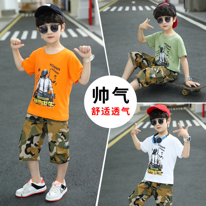 Boys' summer suits 2022 new children's cool and handsome eating chicken short-sleeved two-piece suits for big children in summer handsome and fashionable