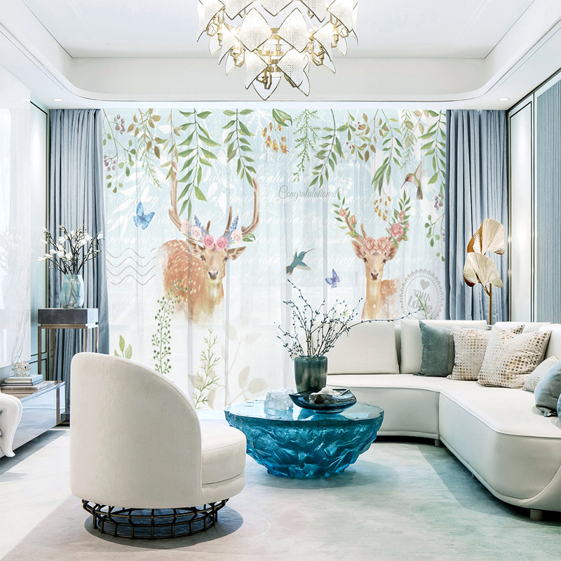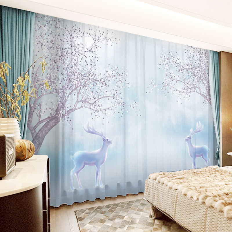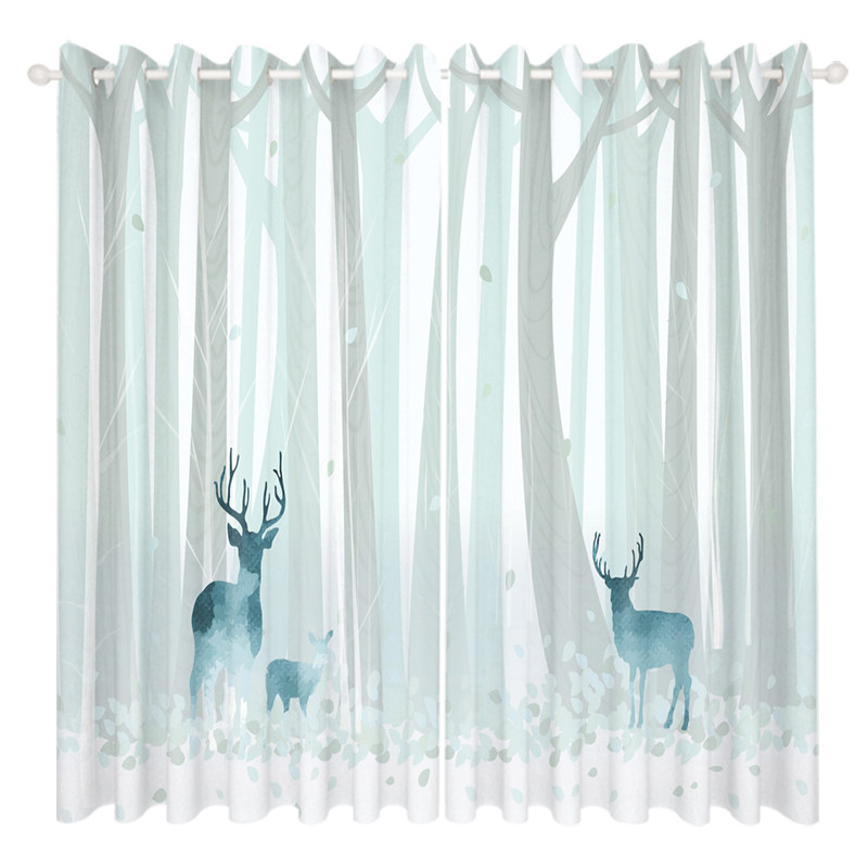Custom Curtains Nordic Ins Wind Dreamy Woods Elk Deer Living Room Bedroom Floating Windows Minimalist Modern Shades Shade