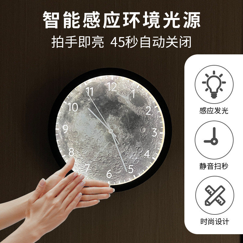 Voice-controlled luminous hanging clock Living room Home Creative mute Punch-Free Clock Hanging Wall Watch New LED Quartz Clock-Taobao