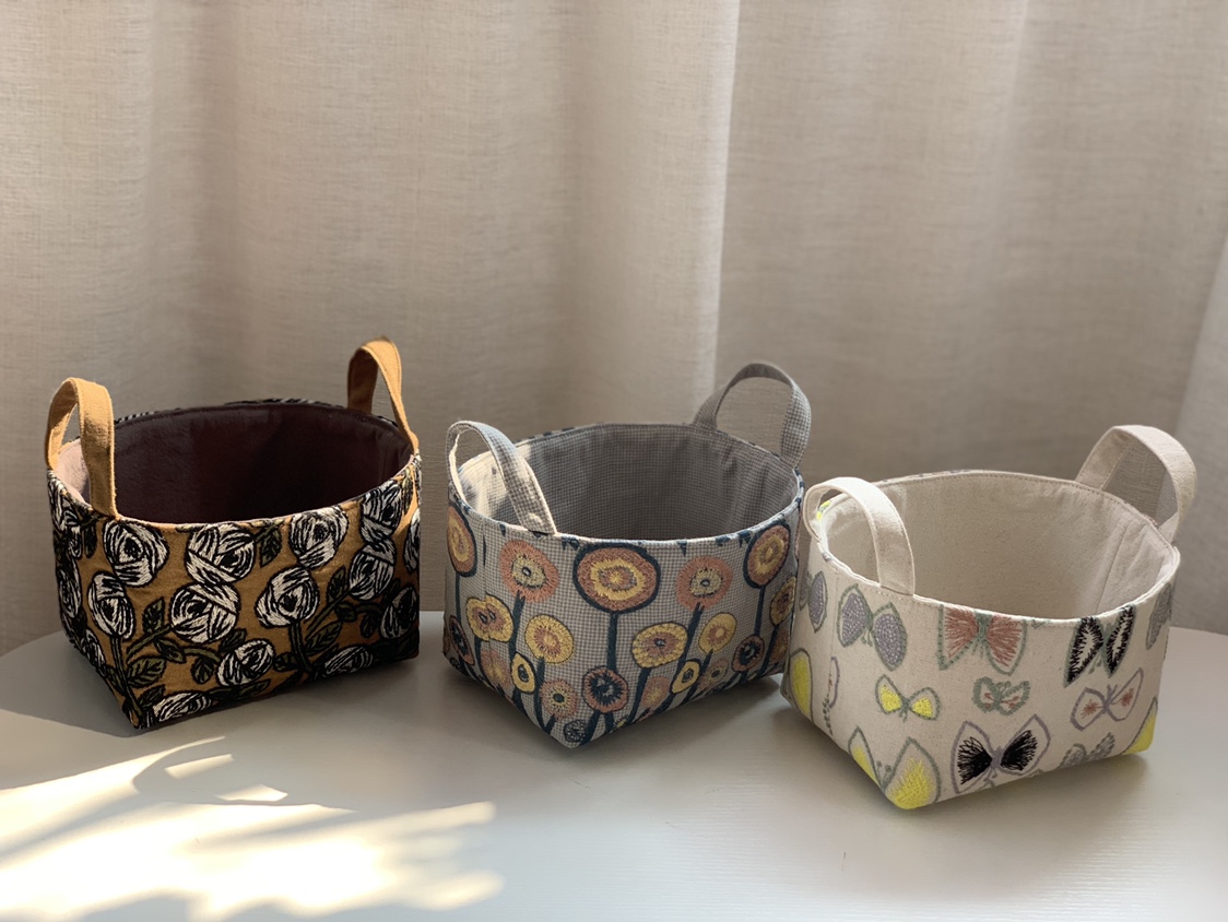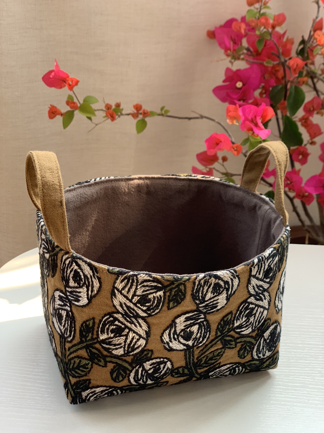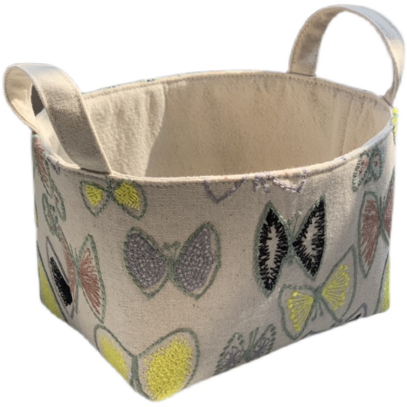 Treasures handmade custom cotton linen embroidery rose butterfly trail containing basket