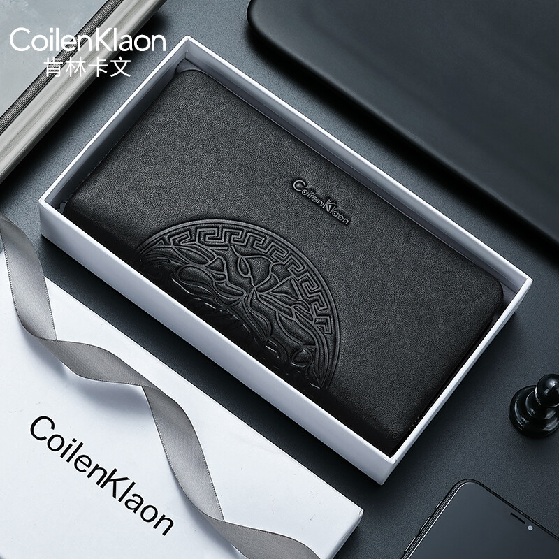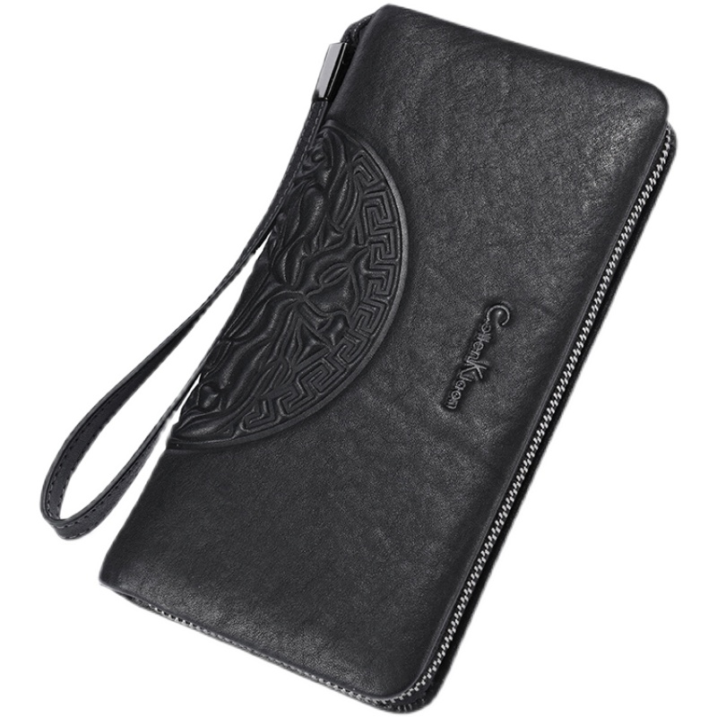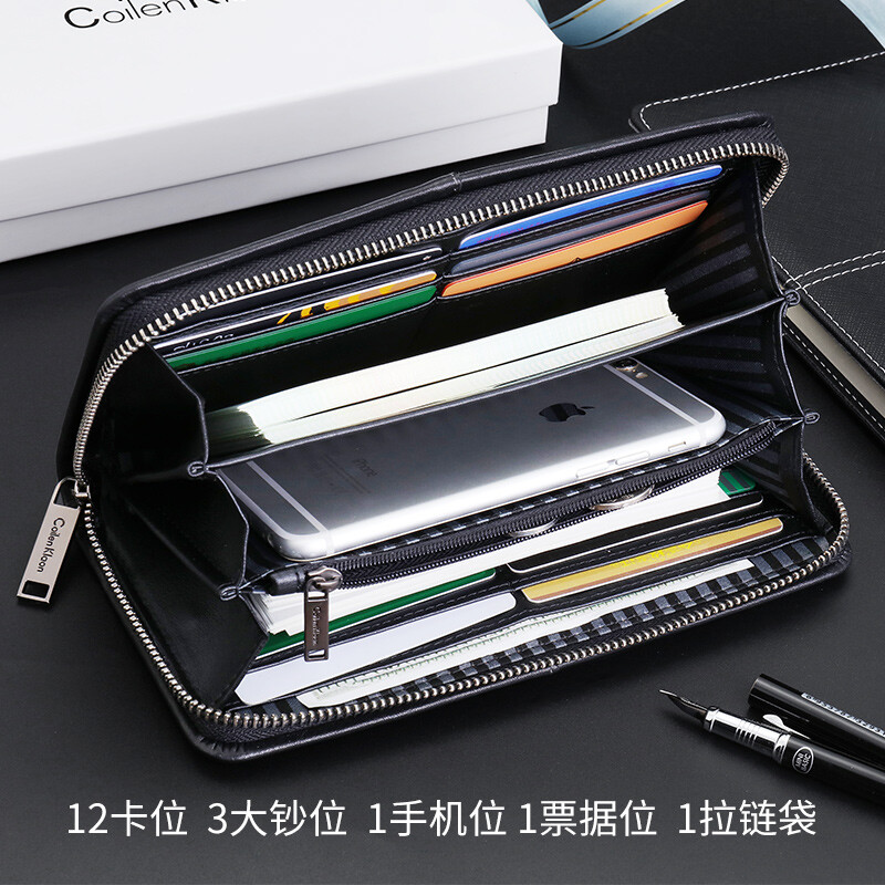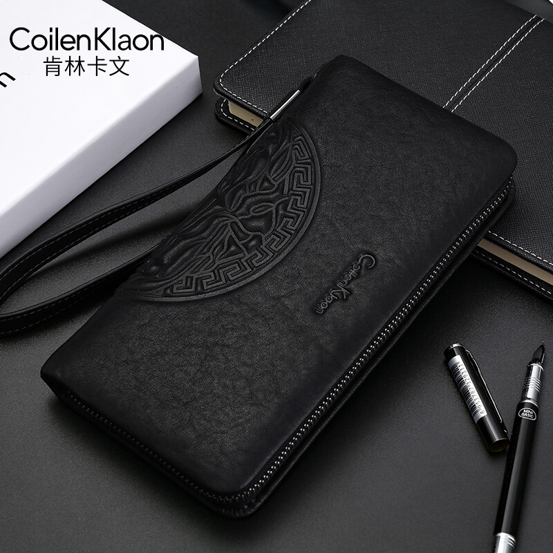 CoilenKlaon men's wallet leather long version zipper clutch pure cowhide large capacity casual clutch for men