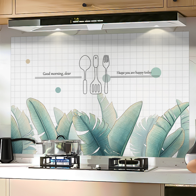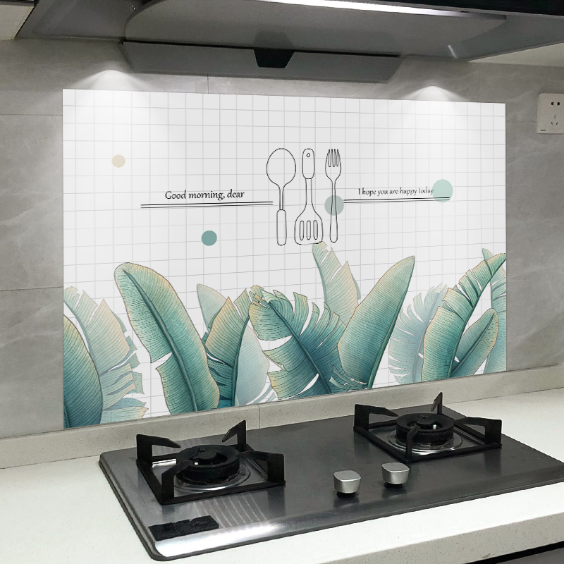 High temperature resistant scrubbing oil-proof stickers decorative wall stickers range hood kitchen stickers wallpaper self-adhesive plant fresh stickers