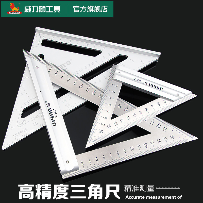 Power Lion Stainless Steel Triangle Meter Multifunctional High Precision Woodworking Dimension 45° Angle Aluminum Alloy Ruler