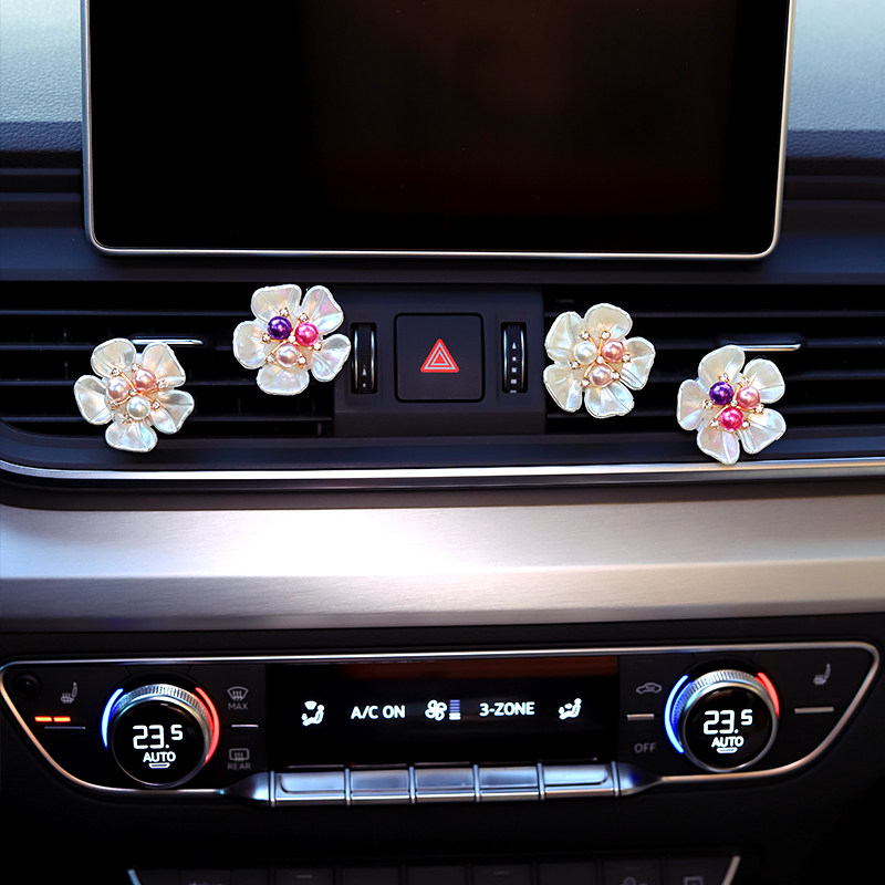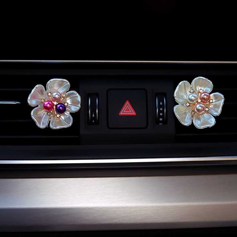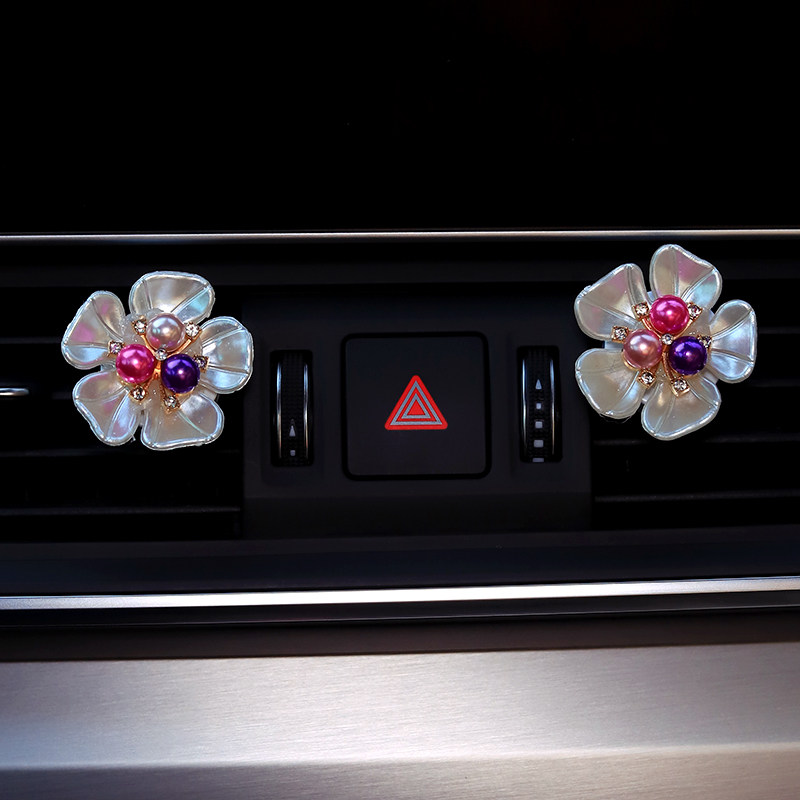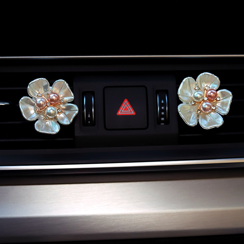 Car air outlet perfume clip creative pearl daisy flower car rhinestone air conditioning aromatherapy decoration ornaments