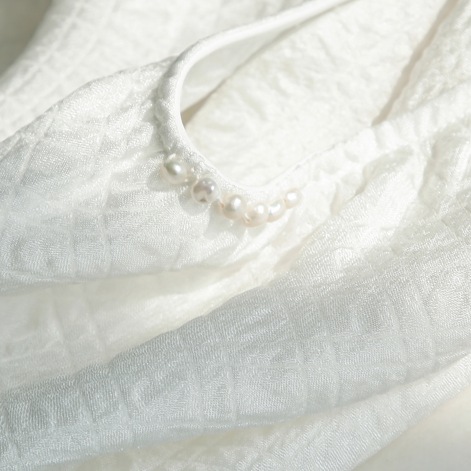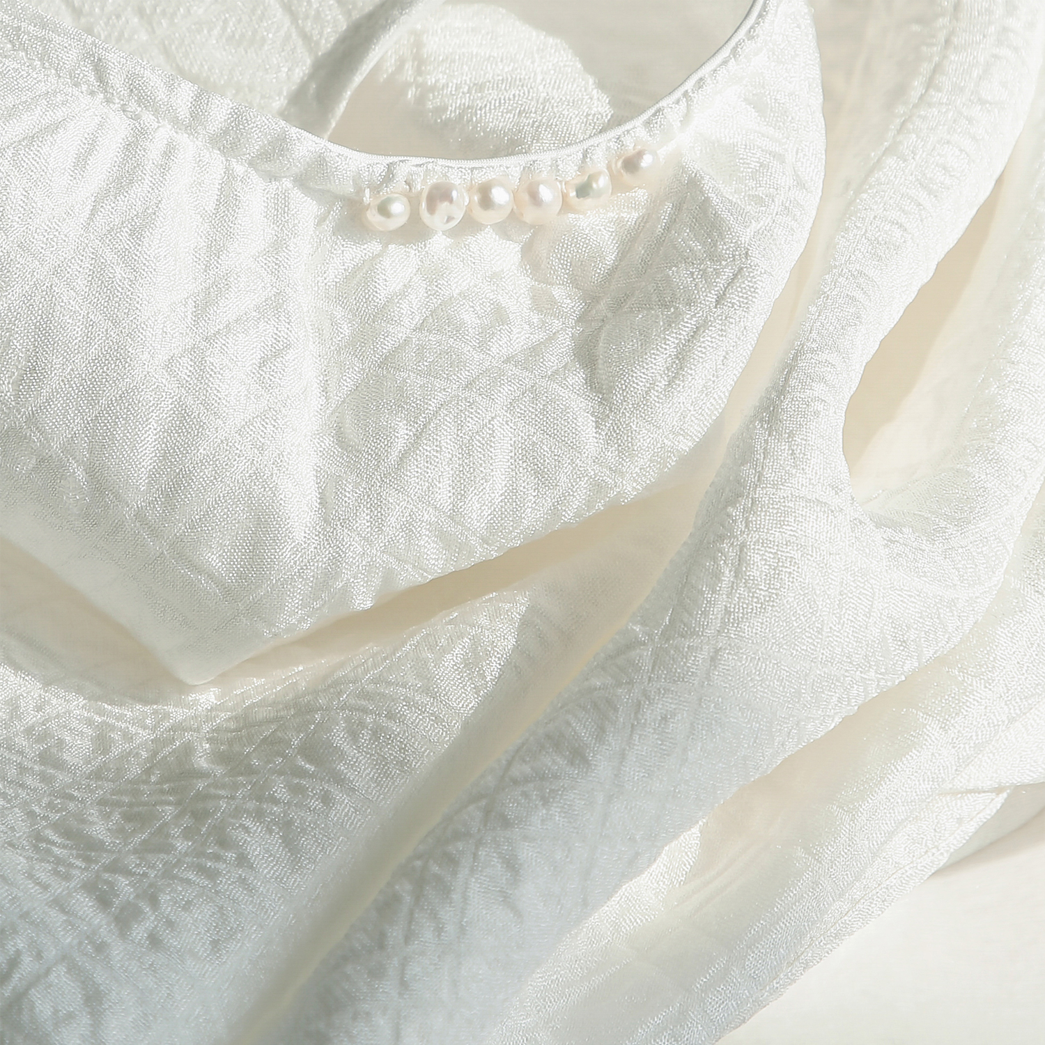 Rongmei (CY0311395) custom texture texture pearl collar silk seersucker mulberry silk top shirt
