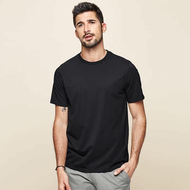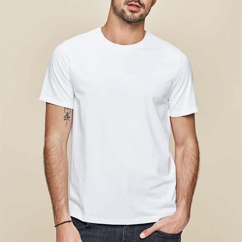YANECINE Xinjiang cotton couple's solid color T-shirt men and women with the same paragraph simple fashion all-match casual short-sleeved top