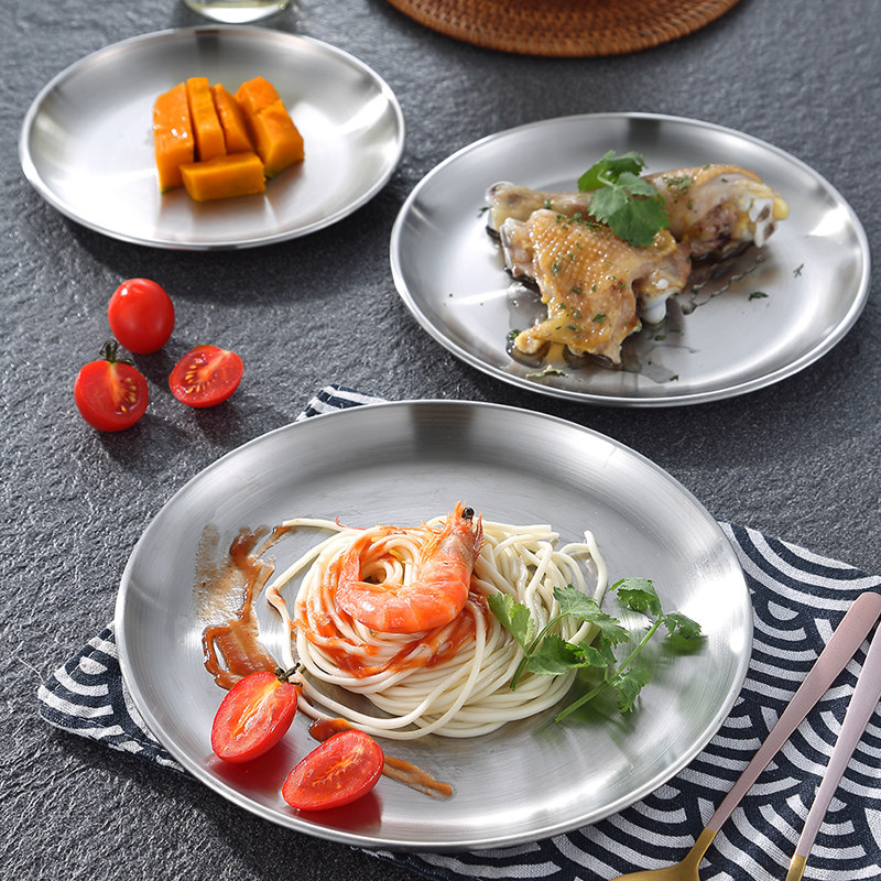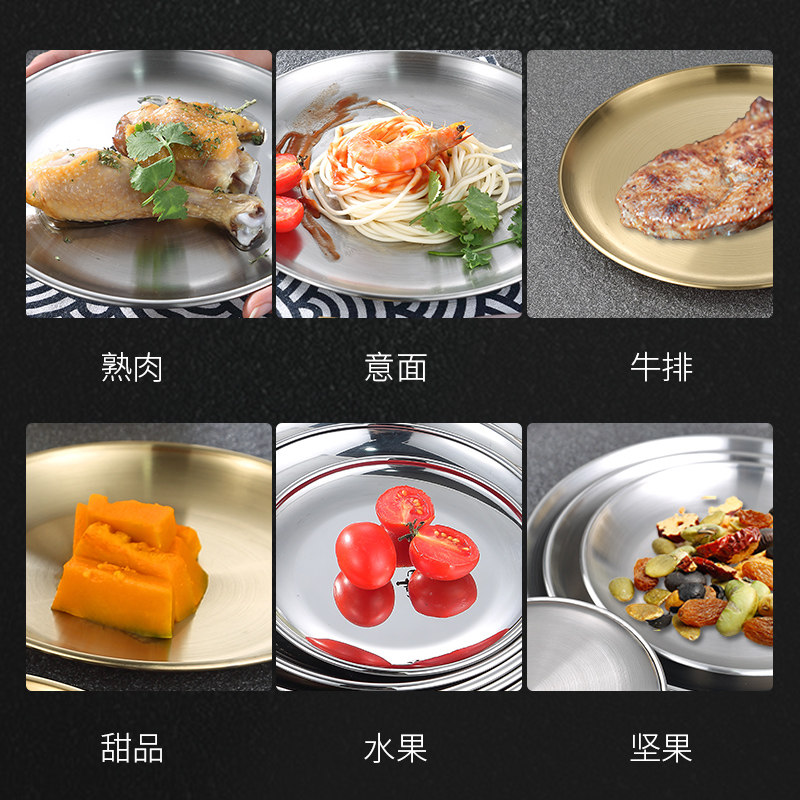 Korean barbecue plate thickened golden cake plate bone plate shallow plate stainless steel round tray cafe fruit plate