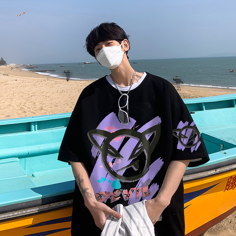 Short-sleeved T-shirt male national tide summer couple niche design sense clothes loose and versatile tide brand plus-size half-sleeve t-shirt