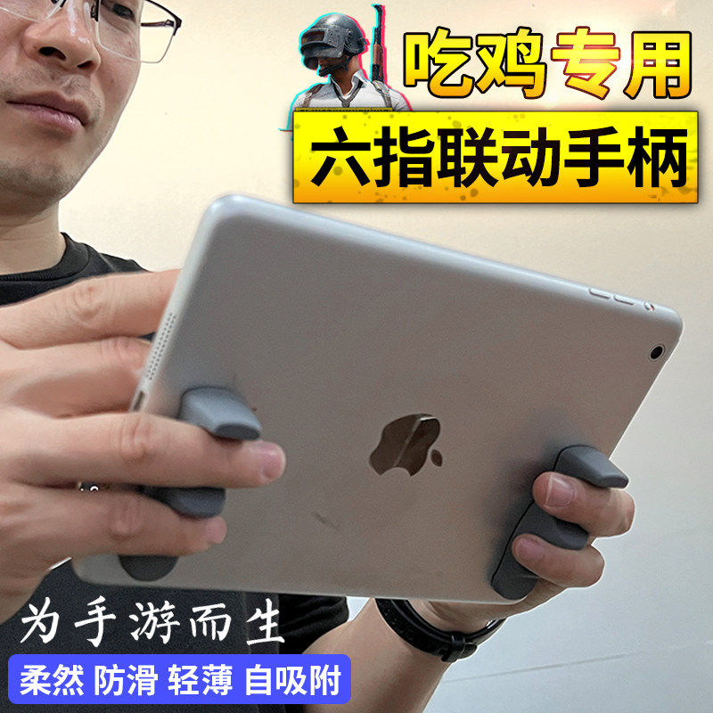 Tablet Eating Chicken Theorizer Electric Race Game Silicone Handle Hand Grip Peace Elite Six Fingers Operation King Glory Aids Gyroscope Self-Adsorption Ipad Anti Slip Grip Handle 5 Fingers 2 3
