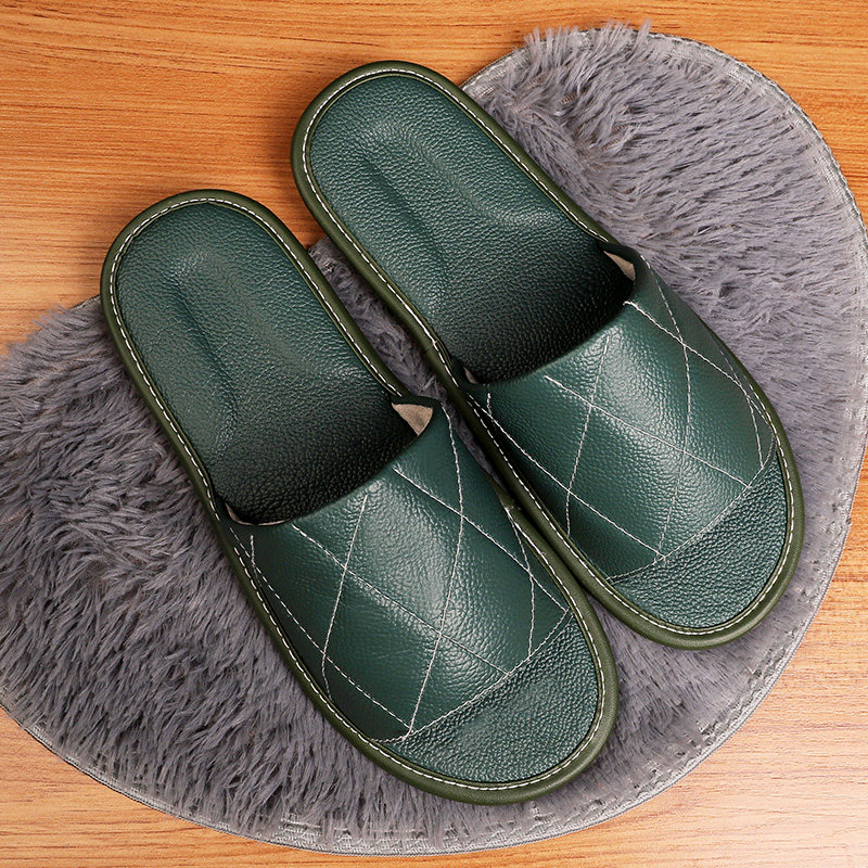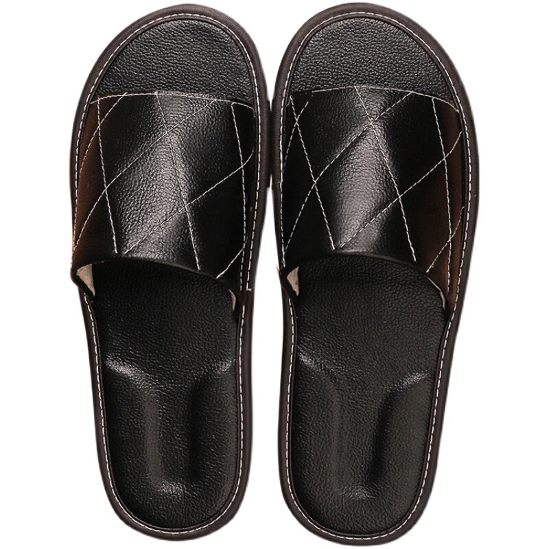 Summer genuine leather slippers for men and women indoor floor soft bottom non-slip magnesite house breathable couple home shoes Home