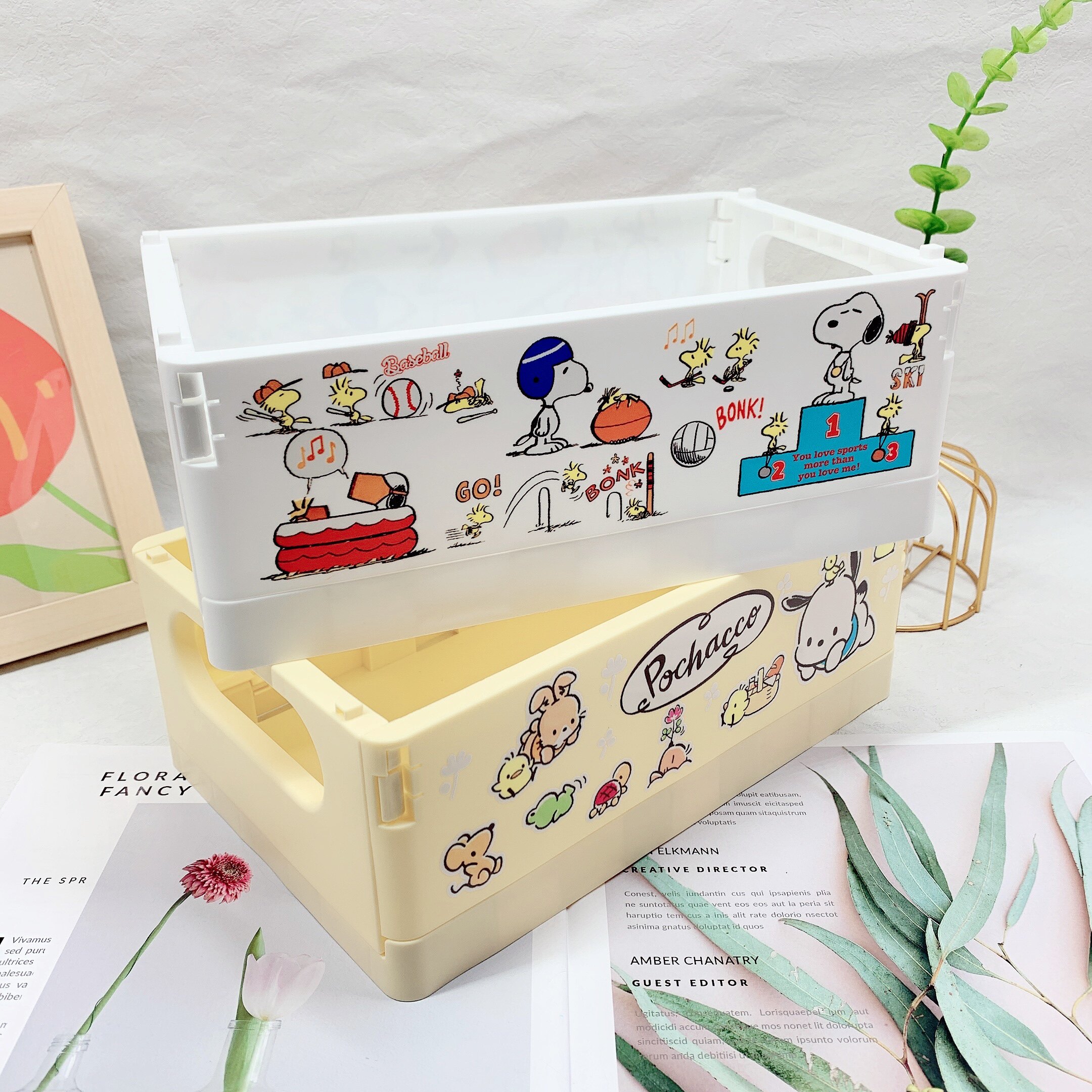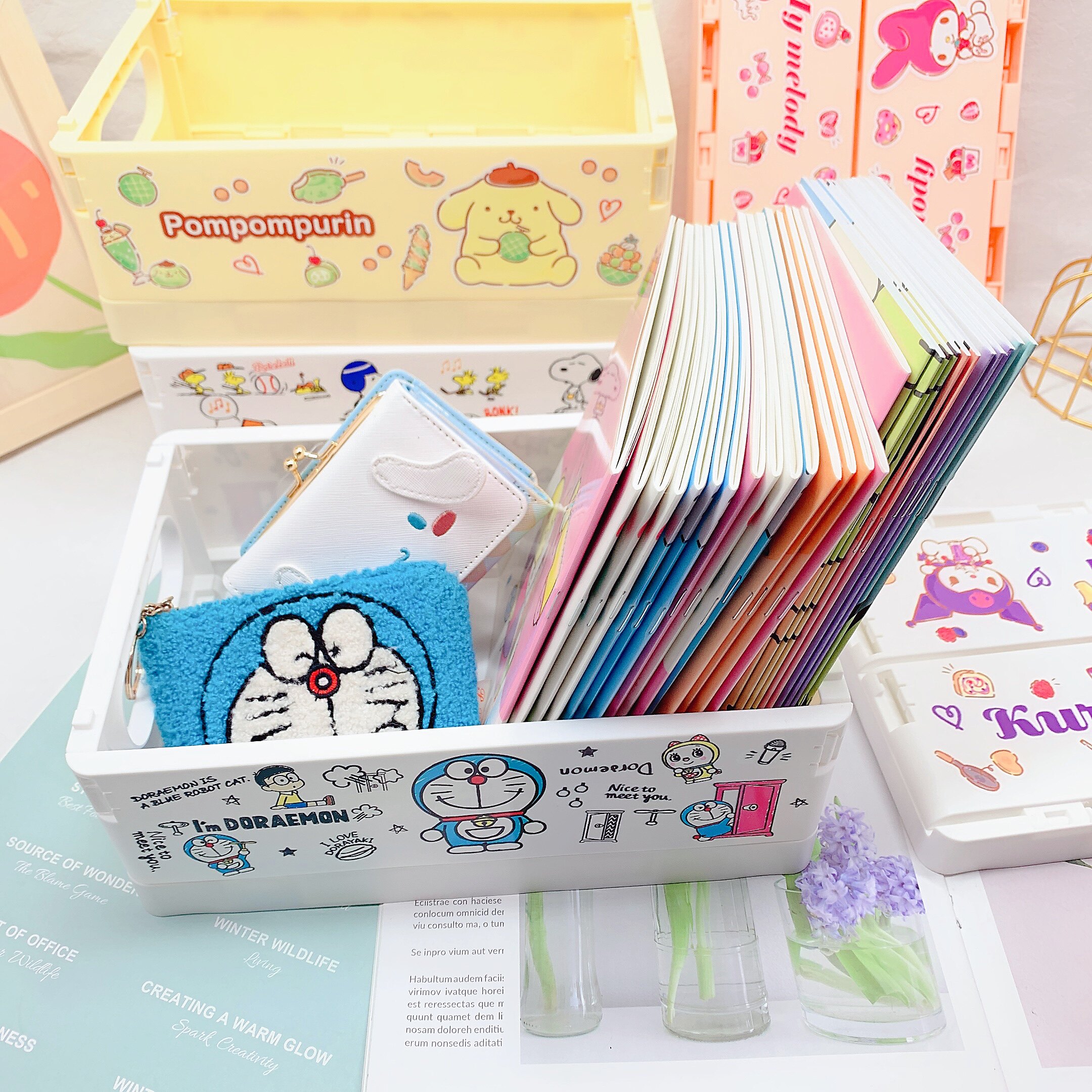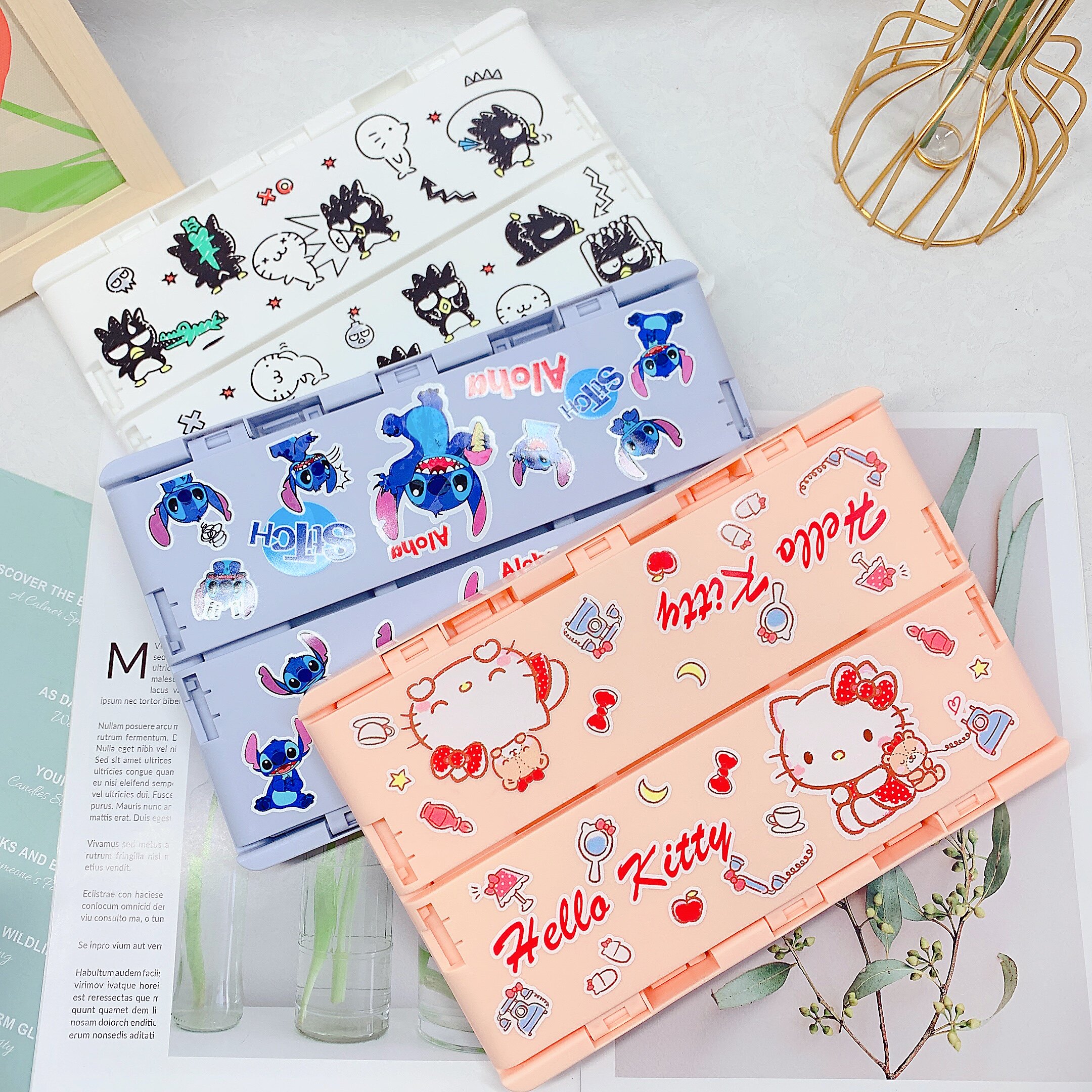 Cartoon folding desktop containing box for the top of the table