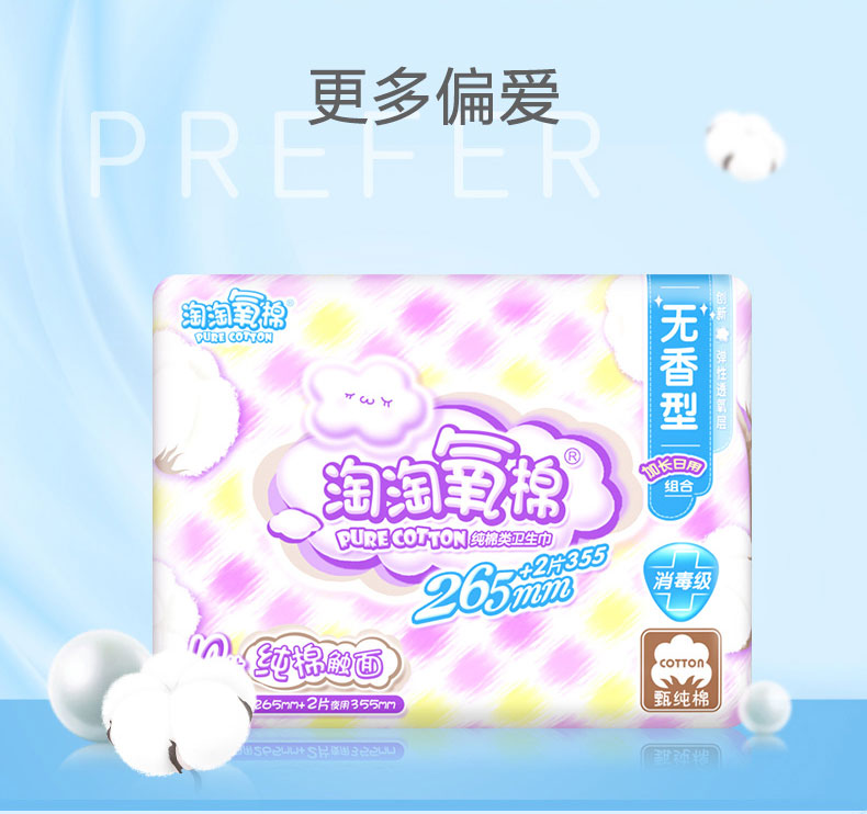 Naughty Oxygen Cotton Pure Cotton Sanitary Cotton Femini Slim breathable 265mm day and night with combined 10 pieces Aunt Towel students