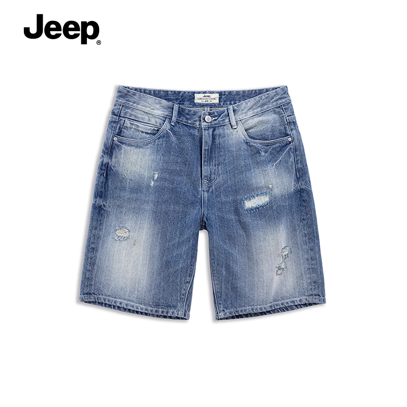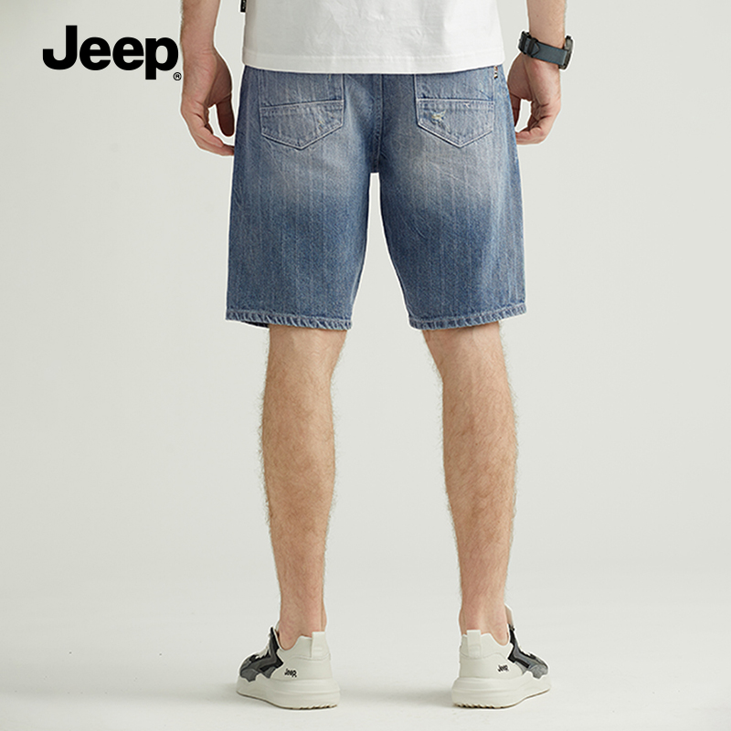 jeep gipdenim shorts male 2022 new summer slim straight cylinder loose casual light blue 50% pants