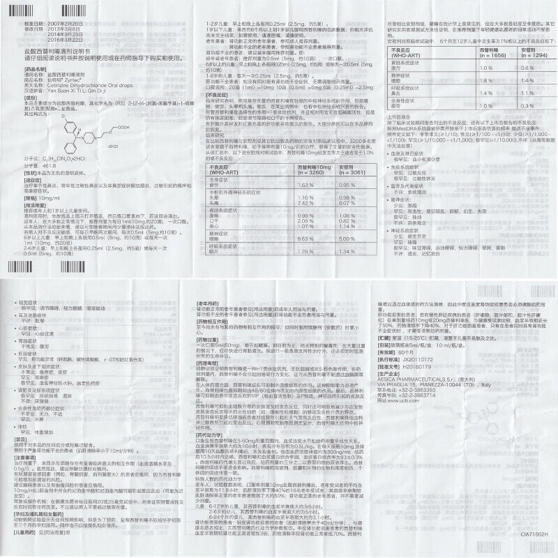 Sentemin hydrochloric acid cetelizine drops 5ml: 50mg * 1 bottle of long-term allergic seasonal rhinitis eye conjunctivitis urticaria