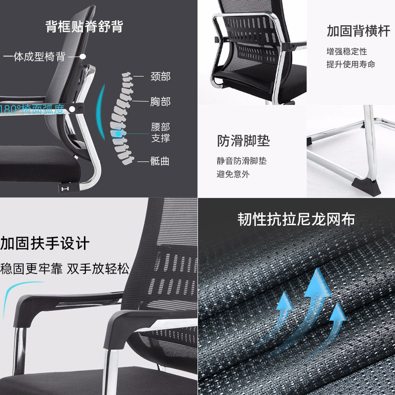 Hangzhou bow-shaped mesh chair fixed conference chair computer chair office chair staff chair black household chair spot