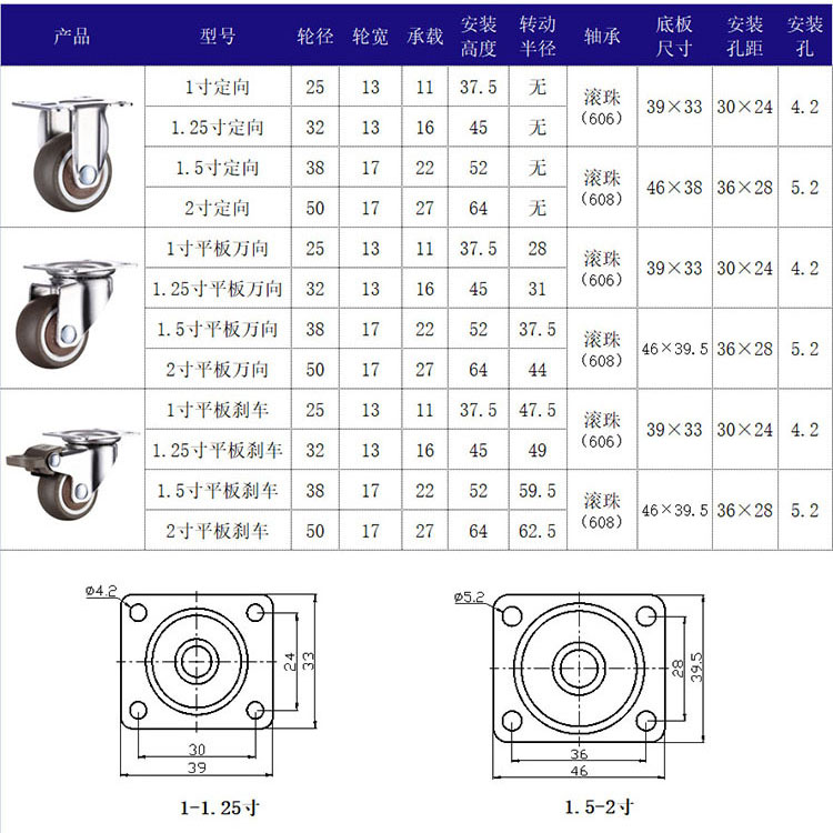 Tablet (1 00-inch) orientation wheel flat (1 00 inch) universal wheel flat (1 00 inch) brake wheel flat (1 25 inch) directional wheel flat (1 25 Ying