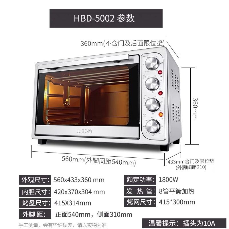 UKOEO HBD-5002 fully automatic electric oven large capacity 52L baking 8 pipe multifunctional household small oven-Taobao