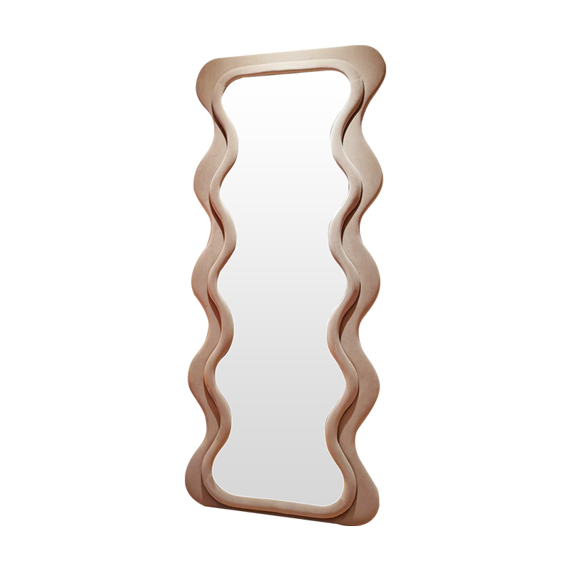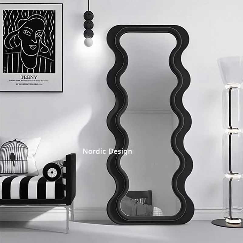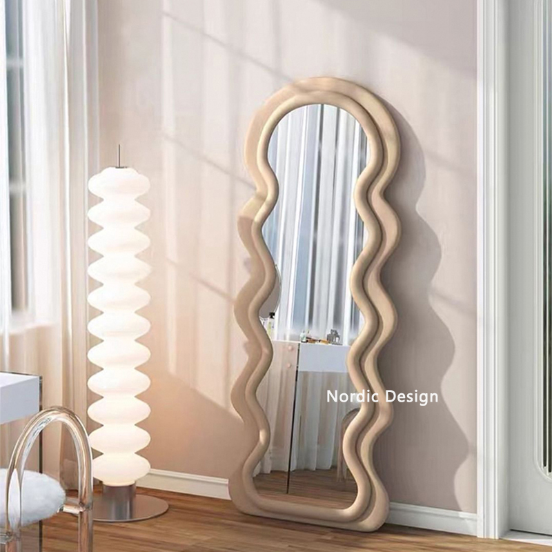 Dressing mirror retro wave full body mirror Nordic ins bedroom wall hanging fitting mirror household special-shaped floor mirror