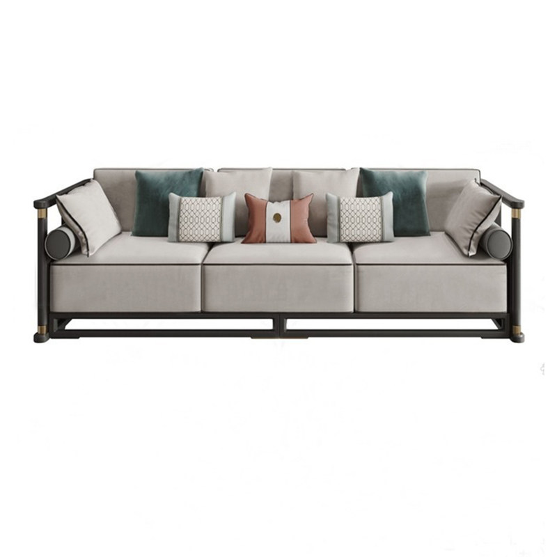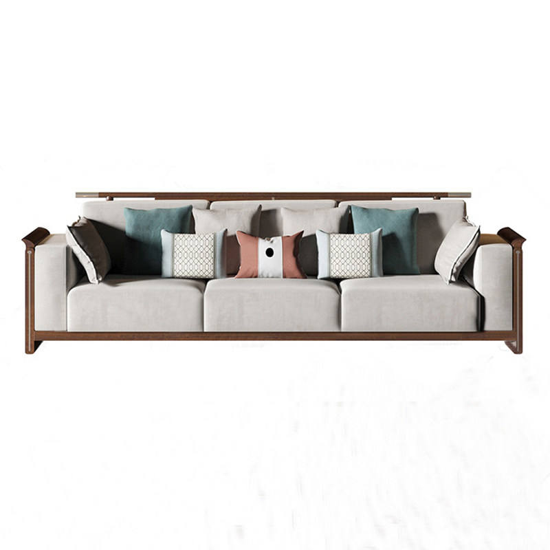 New Chinese-style solid wood sofa three-person modern minimalist sales office model room hotel Zen club furniture customization