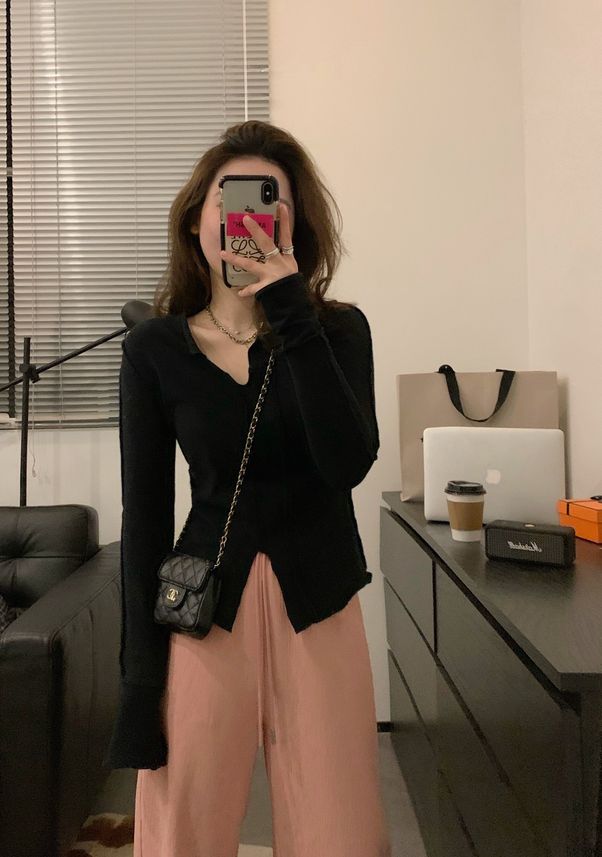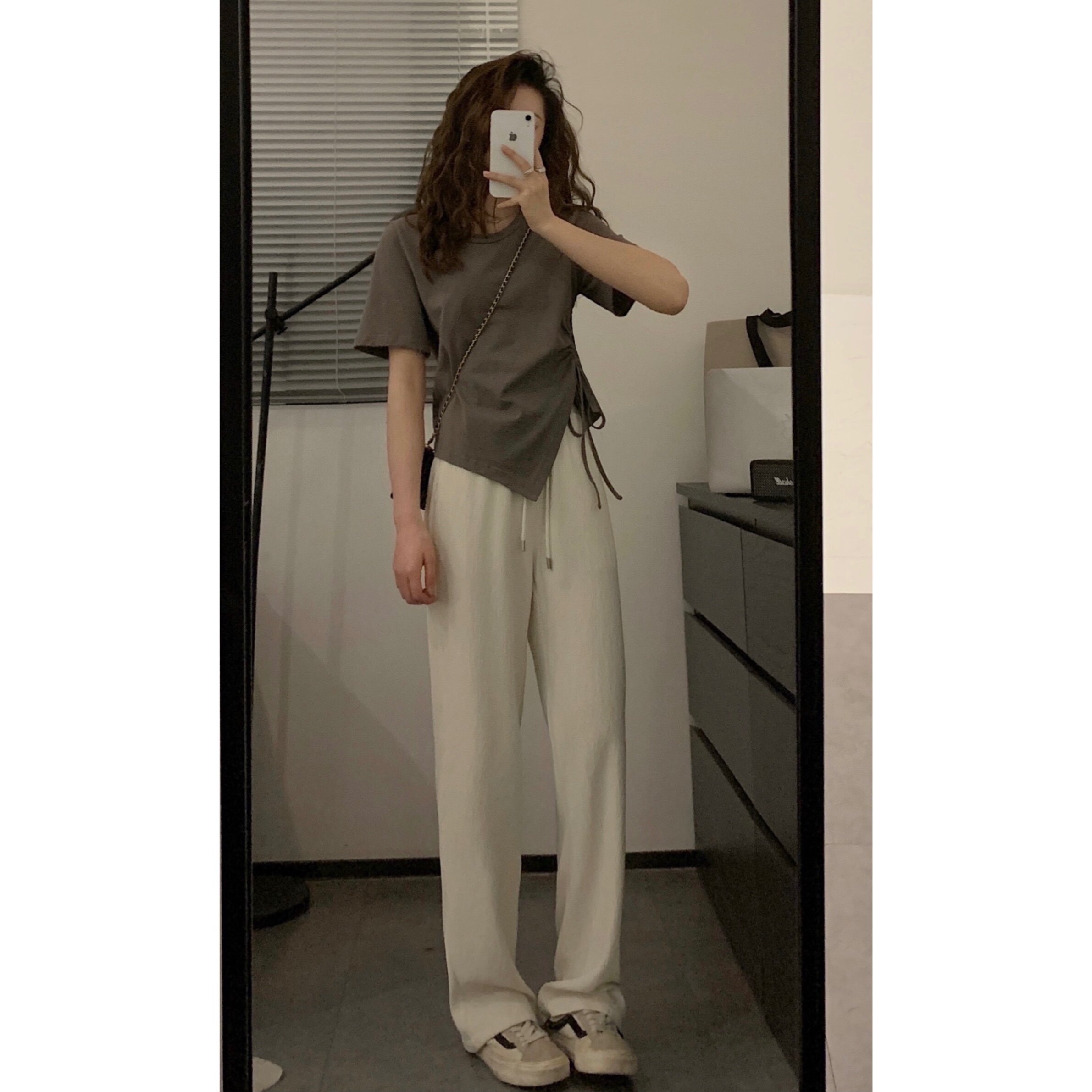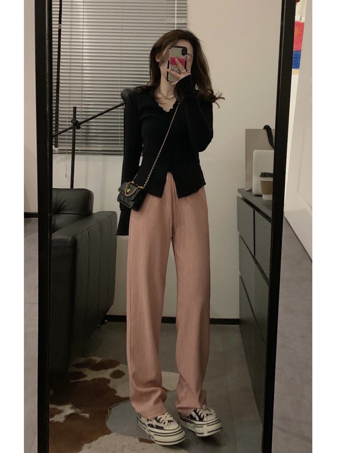 Viiwen silk slip pituitary pants fine toothpick pleats slim and high waist pituitary micro tug Leisure straight cylinder wide-legged pants female